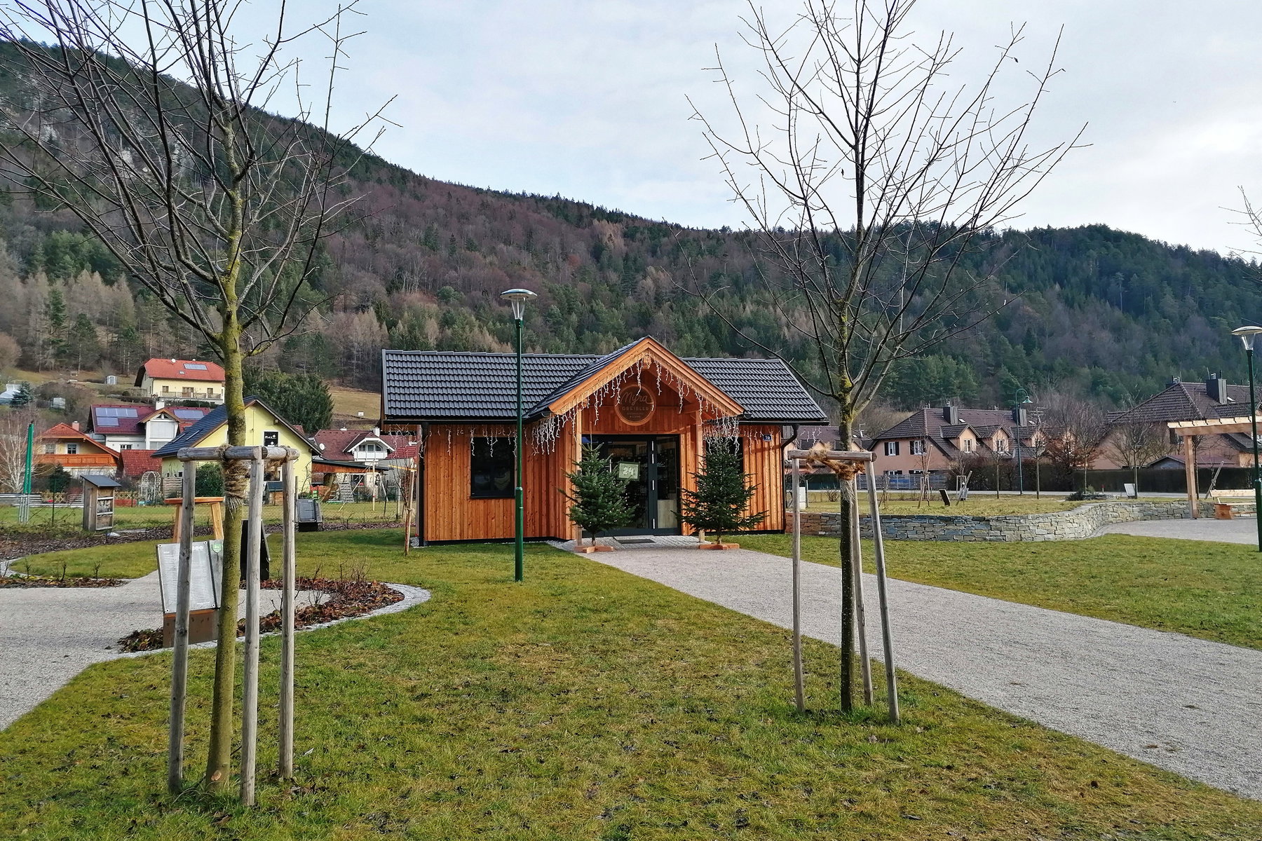 Besonders fein – und neu! – ist in Muggendorf ein immer geöffneter Selbstbedienungsbauernladen, der „MYRAGreißler“, sehr nett und eine super Option für Menschen, die noch schnell eine Wanderjause kaufen wollen. Zu finden ist er gleich neben dem Gemeindeamt – da haben die Muggendorfer*innen etwas richtig gemacht, wir stöbern auf jeden Fall gleich durch und kaufen natürlich auch etwas, einfach, weil die Idee so nett und unterstützenswert ist.