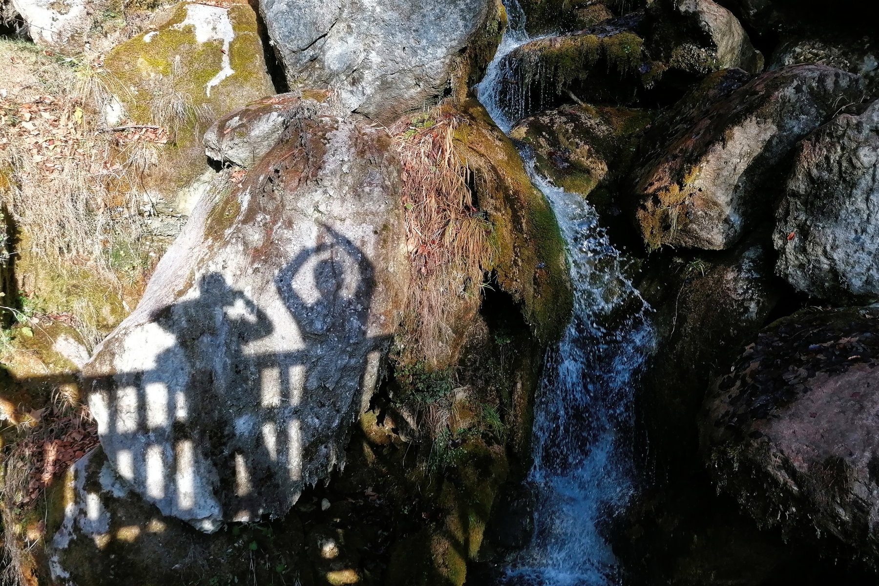 Die zweite positive Überraschung des ersten Wandertages sind die Myrafälle – da Wintersperre ist, gibt’s keine Eintrittsgebühr. Wir gehen durchs Drehkreuz durch – und erleben die Myrafälle, die ansonsten ja grad am Wochenende sehr voll sind, völlig menschenleer. Wir durchschreiten sie gemächlich und stets bergauf, genießen die Sonne, die Wasserfälle und die Ruhe.