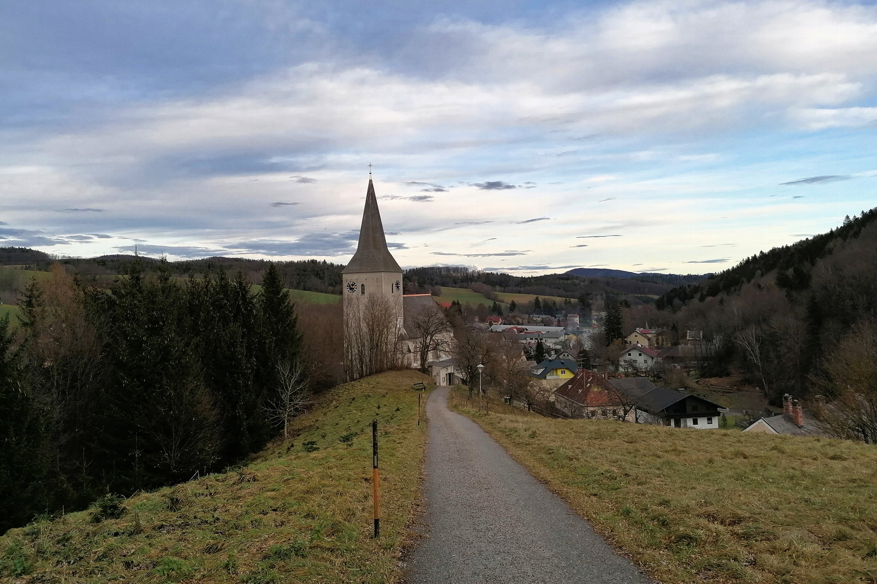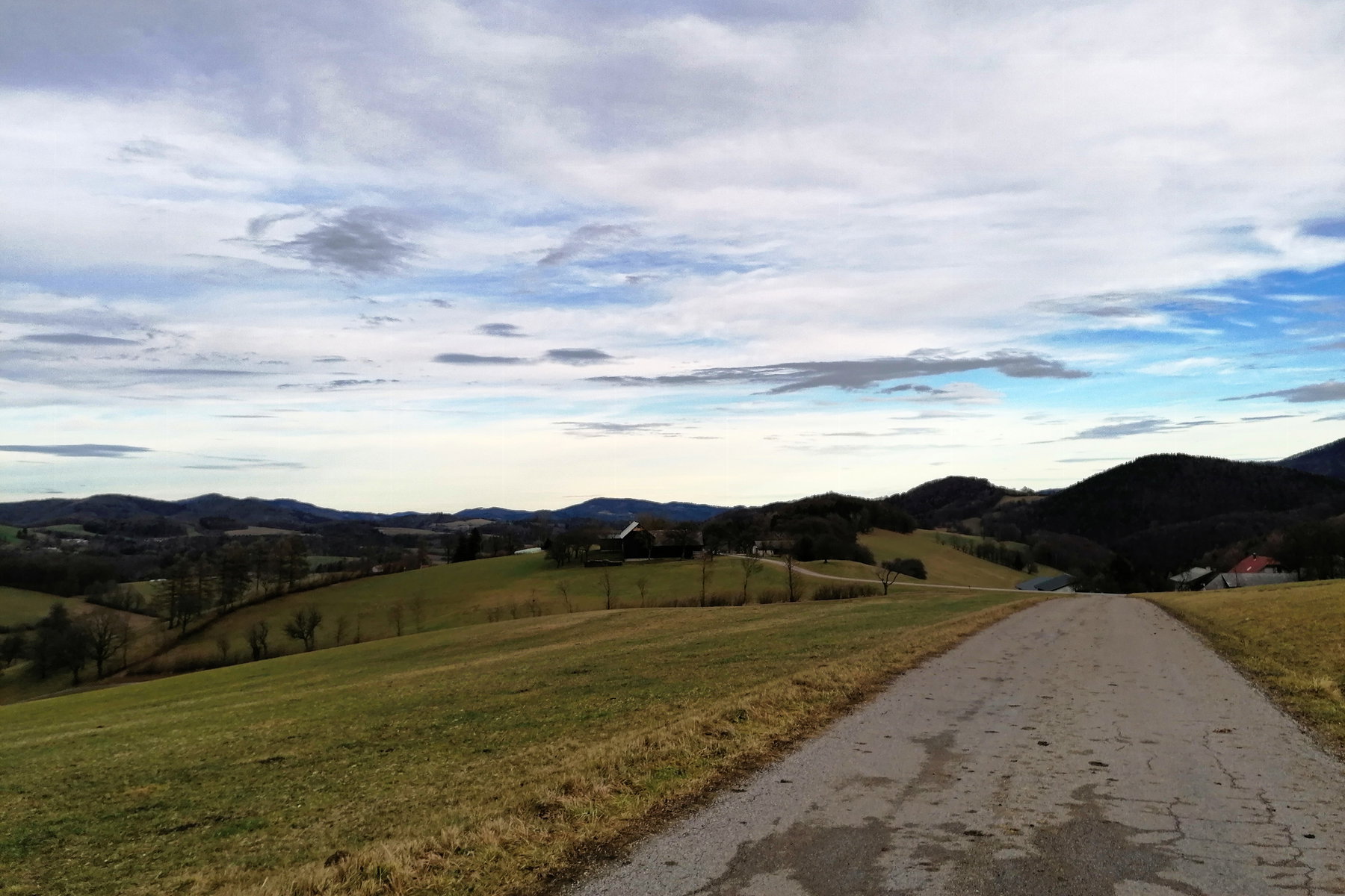 Wer bei der Araburg noch topmotiviert und an keinem kurzen Wintertag unterwegs ist, kann die Wanderung Richtung Westen fortsetzen und nach Hainfeld gehen. Wir nehmen heute aber die kürzere Variante gen Nordosten und gehen zügig nach Kaumberg an der Triesting hinunter.