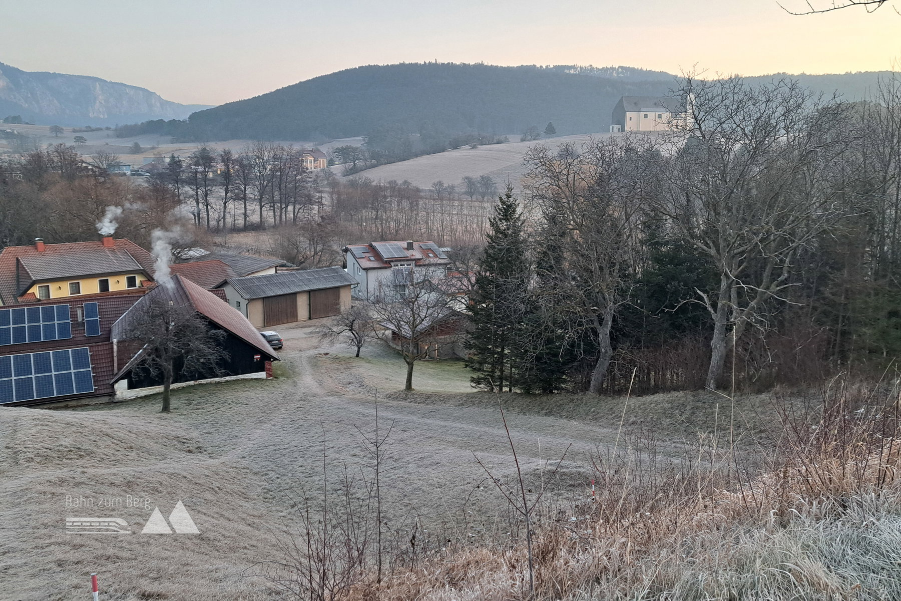 Wir starten im Bahnhof Unterhöflein, am Frauenbach kurz bergab und über den Kirchbühel mit der großen Wallfahrtskirche. Die Puchberger Straße querend auf den Zweier Wald (633 Meter, zum Teil nicht markiert!).