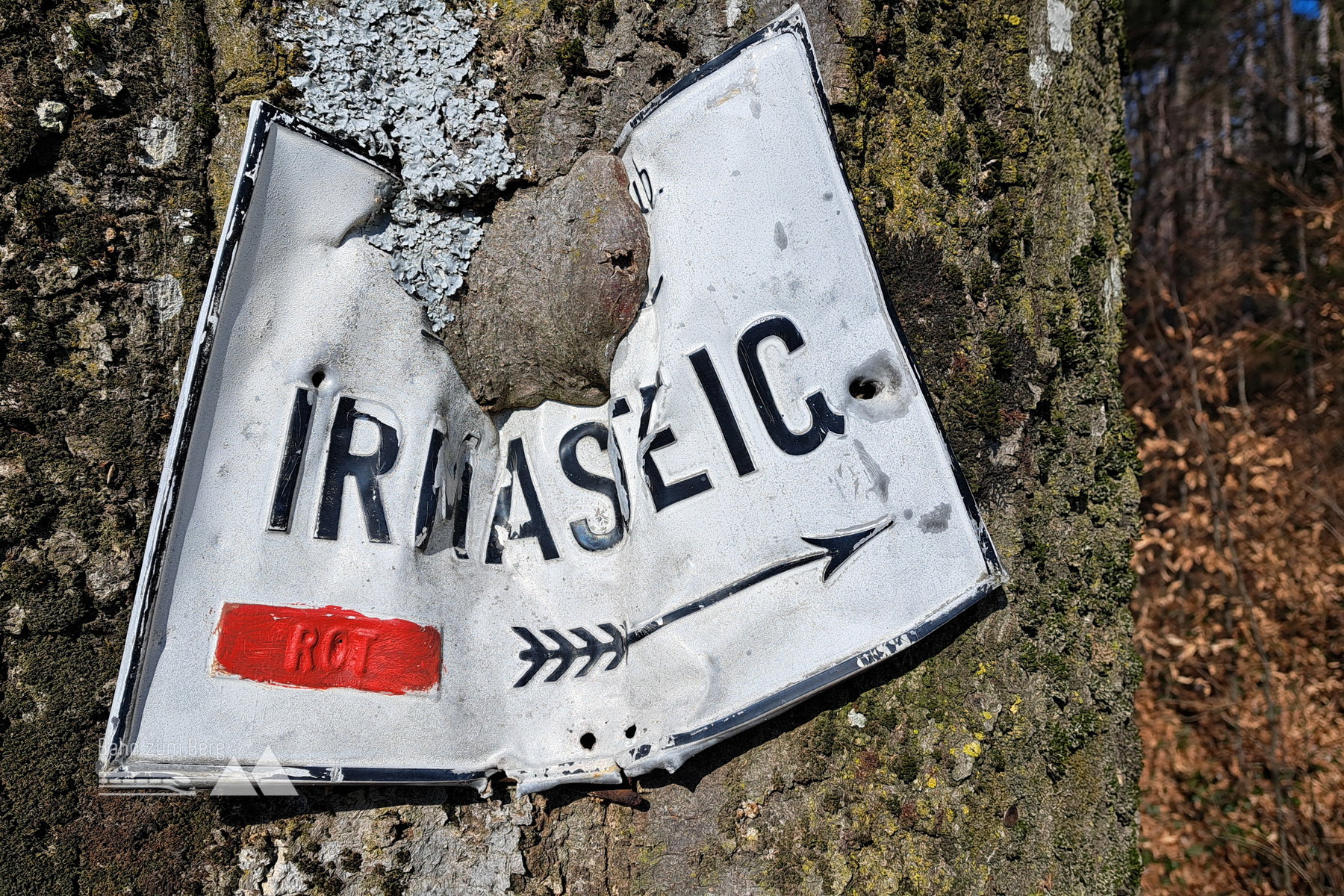 Wer immer noch nicht genug hat, geht noch über die Malleiten nach Wöllersdorf – das ist aber eine andere Geschichte. Diesmal gehen wir die schmale Zufahrtsstraße vom Burgstall bergab, halten uns zuerst links, nach 100 Metern rechts am rot markierten Weg nach Bad Fischau. Bevor wir auf die grüne Markierung stoßen, sind einige Windbruch-Opfer zu übersteigen.