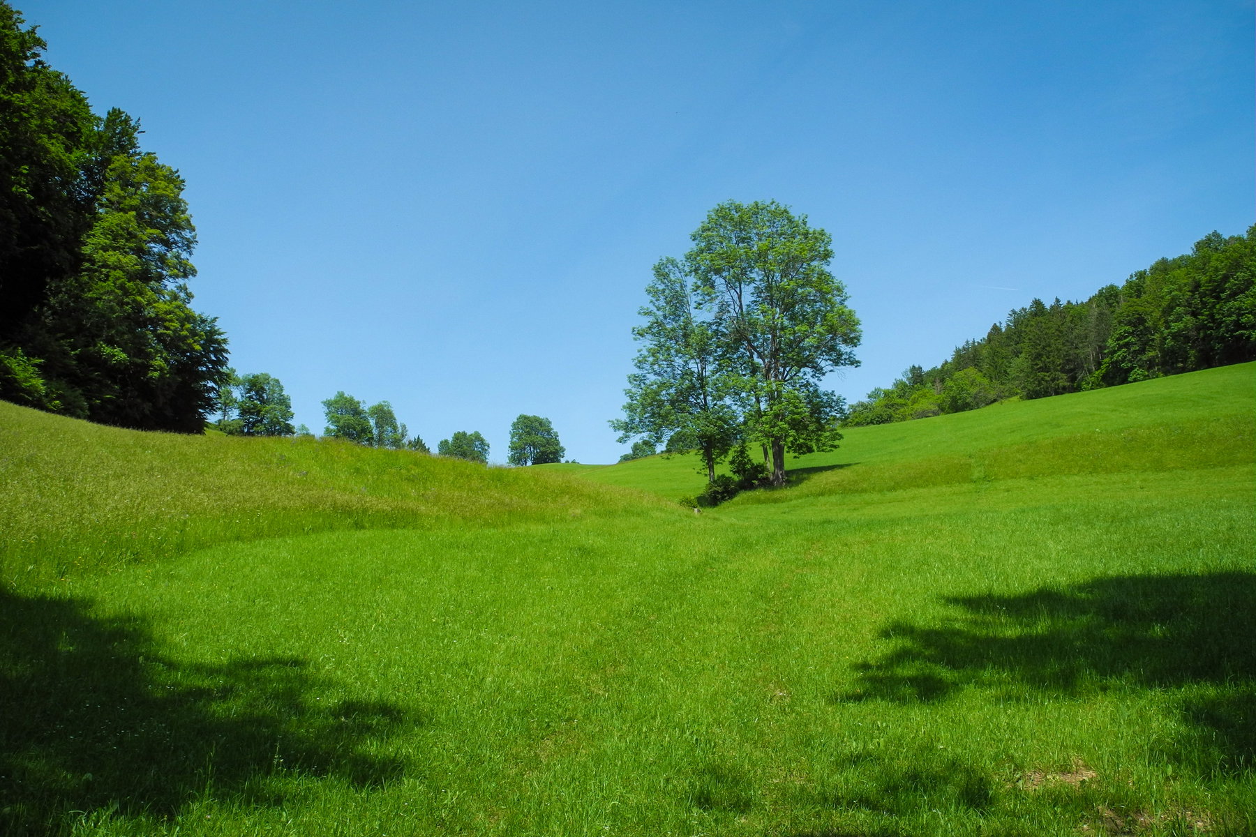 Ab hier zweige ich vom markierten Weg Richtung Scheimhütte links ab und folge immer geradeaus der Forststraße, bis ich eine Futterwiese erreiche. Jetzt geht’s dem Waldrand entlang bis zum Bauernhof Rastberger.