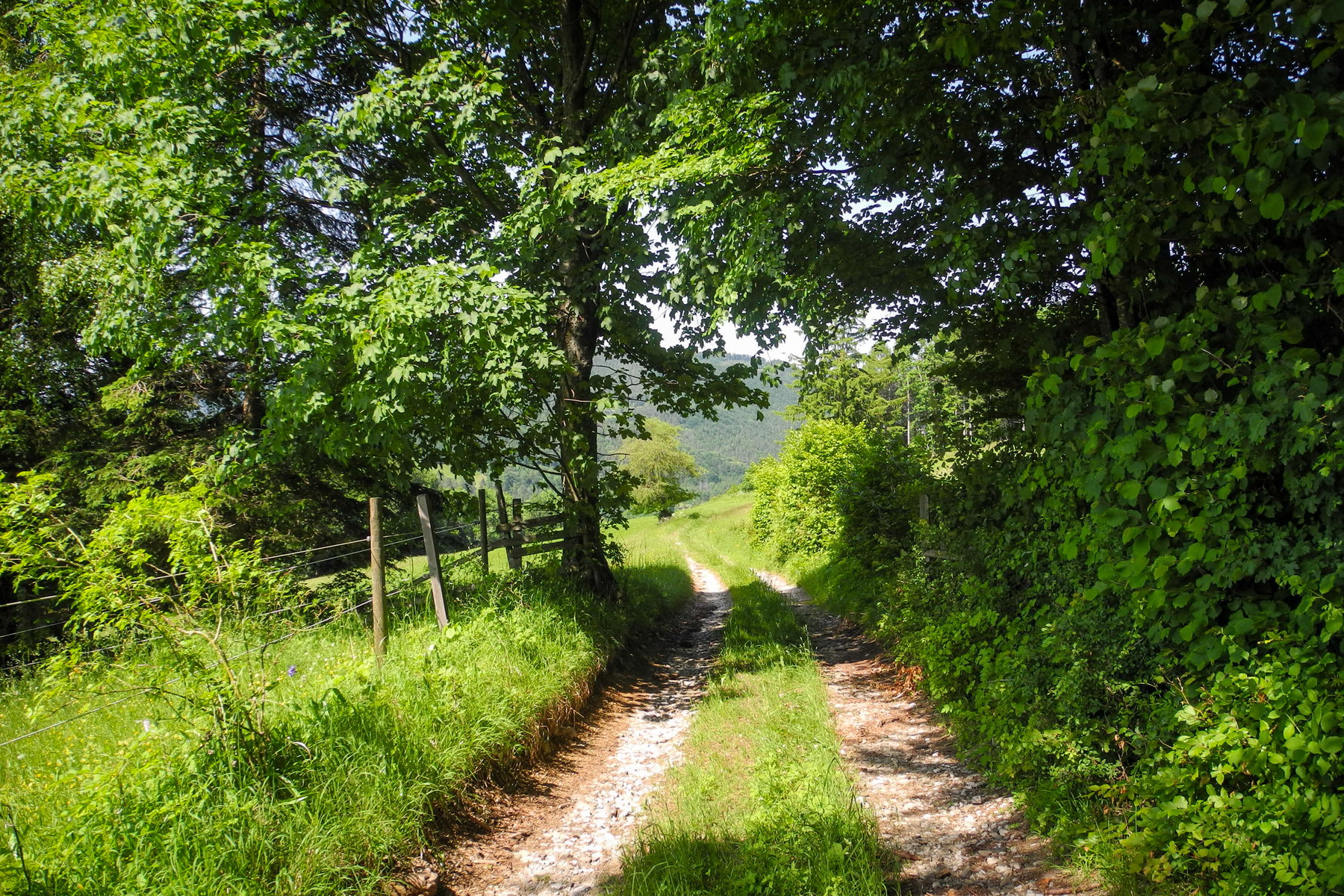 Am Güterweg halte ich mich links und bei der nächsten Kreuzung gleich wieder rechts und befinde mich jetzt auf dem Dürnbacher Höhenweg, der ab diesem Zeitpunkt immer am Waldrand entlang und leicht bergab führt.
