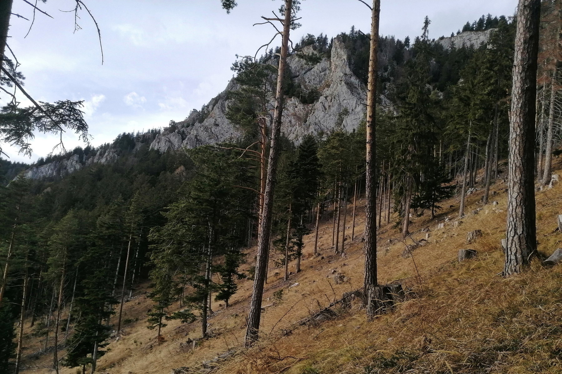 Mittlerweile habe ich mich „eingegangen“ und meine Motivation wächst mit jedem Meter. Für den Abstieg ist es noch viel zu früh! Also entscheide ich mich für den Imnitzersteig und steige in Richtung Norden bergab. Der Steig ist wirklich schön – mit ein bisschen weniger Windböen wäre er noch schöner. Südlich vom Hutberg erwartet mich ein kleines Stück Forststraße, das aber nicht weiter schlimm ist. Ich finde diese faden Passagen (sofern sie kurz sind) meist ganz fein als Pause fürs Gehirn. So marschiere ich flott weiter, der Wind wird weniger, die Sonne kommt zwar nicht wieder, aber das macht nichts. Ich habe sie ja eh an der schönsten Stelle – am Geländ – gesehen und bin versöhnt.
