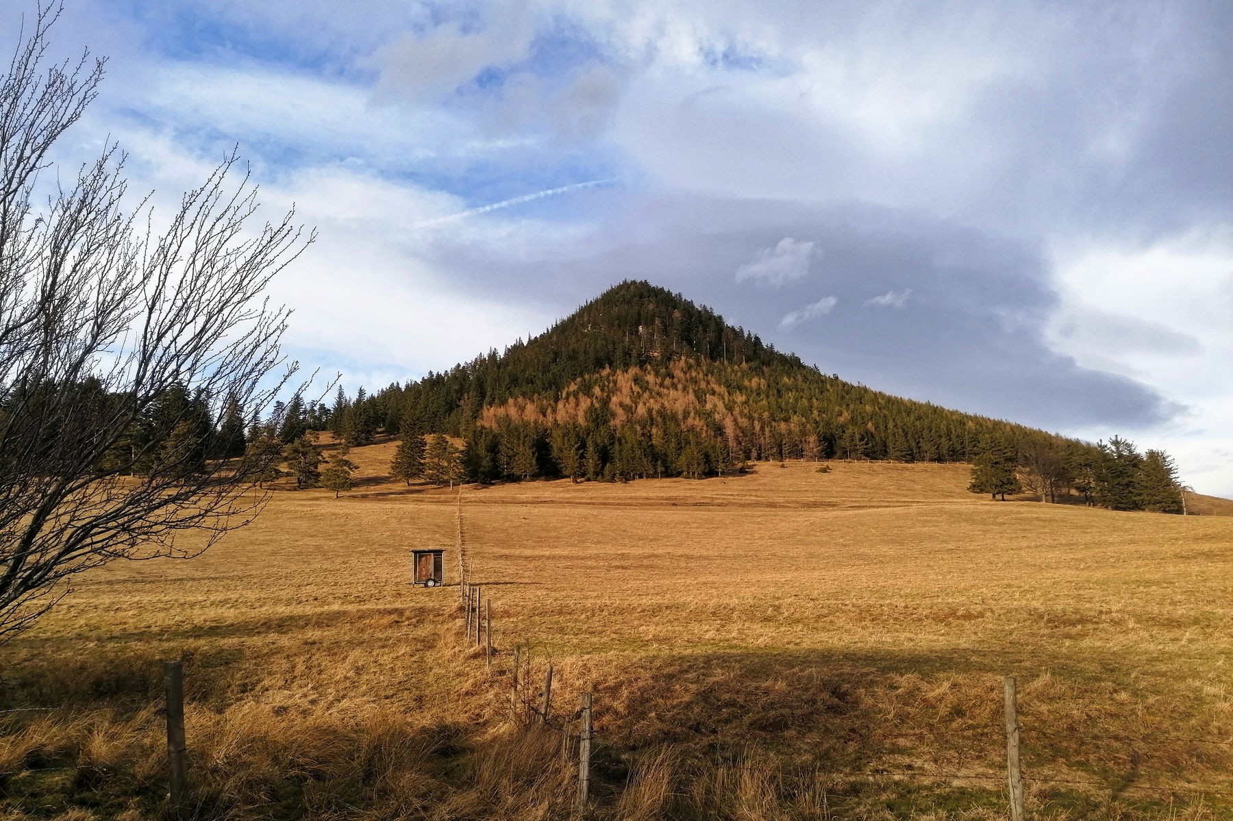 Es zieht mich in den Wald, an diesem etwas trüben Freitag. Sehr motiviert stelle ich mir den Wecker auf 6.30 und wache natürlich nicht auf. Ein paar Stunden später stehe ich dann doch in Meidling und fahre erst mal nach Wiener Neustadt und dann weiter bis Grünbach am Schneeberg Kohlewerk. Veronika hat mich mit ihrem Sonnenuntergangsbericht auf der Geländhütte neugierig gemacht. Der Plan: Zuerst mal dort rauf, dann schau ich weiter.