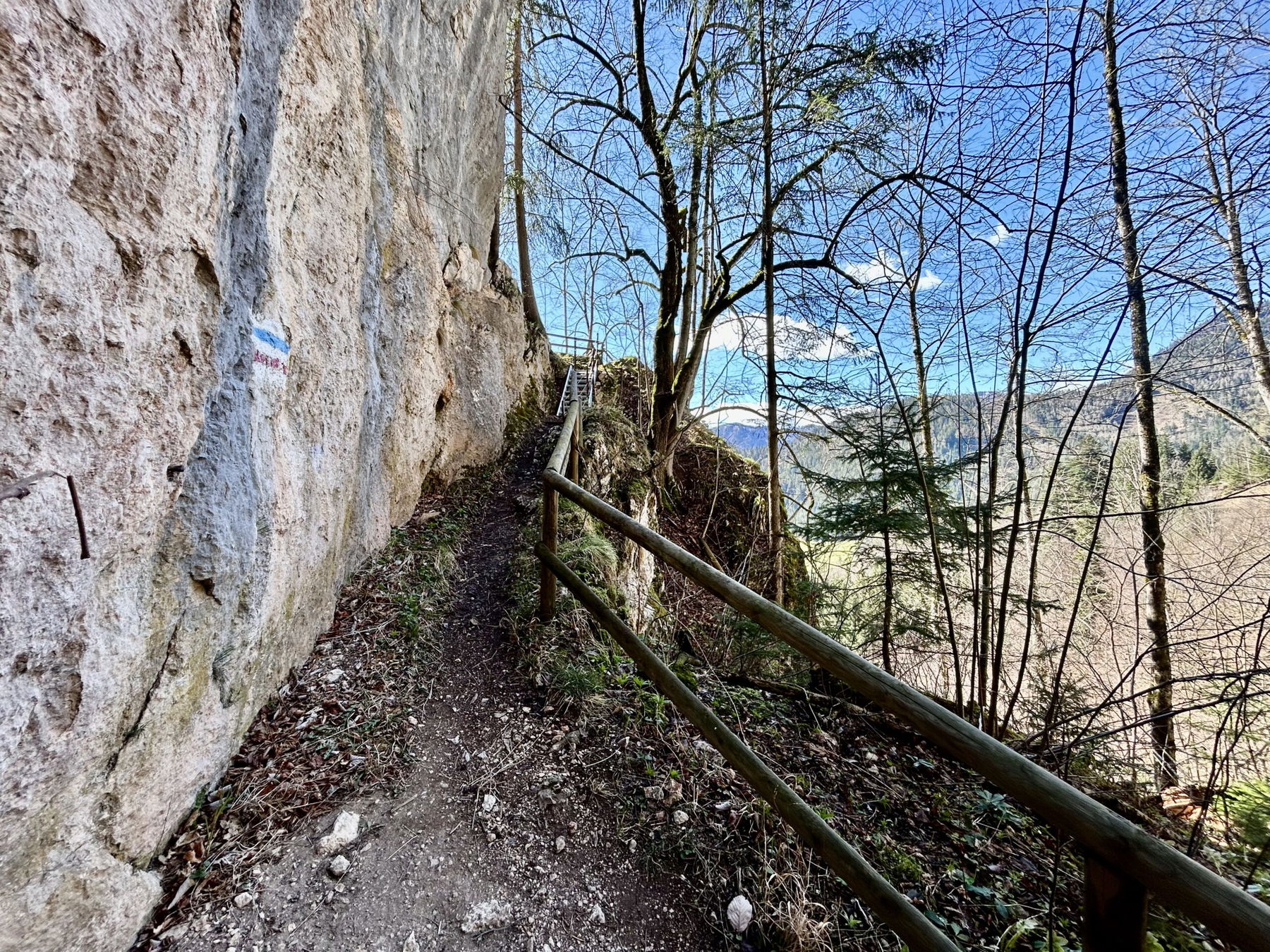 Der Falkenstein (1013 Meter) ist der erste Gipfel auf meiner Wanderung. Der Kirchensteig ist ausgezeichnet markiert und führt durch den Wald hinauf, vorbei an den (verbotenen, wie auf zahlreichen Hinweisschildern zu lesen ist) Kletterwänden des Falkensteins.