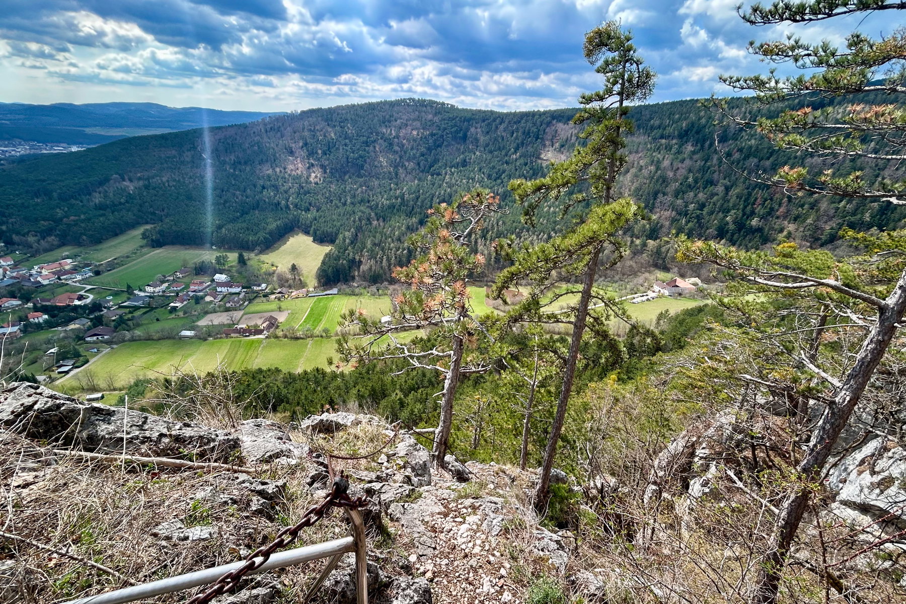 Hier gibt es noch einen kleinen Stichweg zu einem Aussichtplatz – zahlt sich aus, die fünf Minuten zu investieren. Dann gehts weiter abwärts über die „Heahnakräuln“ aka Hühnersteig, der ein kurzes wurzeliges steiles Stück beinhaltet.