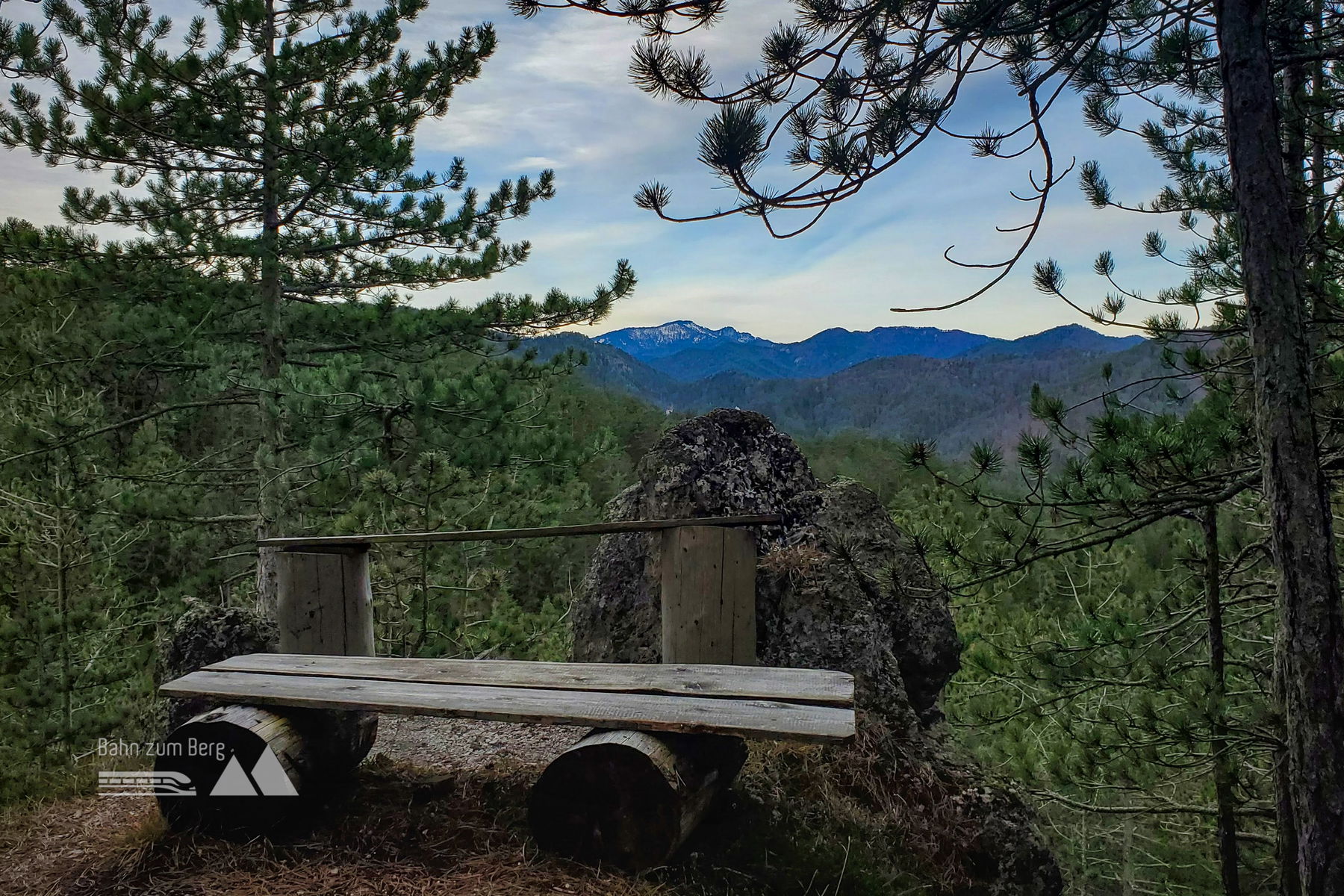 Der Weg ist gut markiert und mündet nach etwa 500 Metern in eine Forststraße. Nach kurzer Zeit verlasse ich die Forststraße leicht nach rechts (einfach der grünen/blauen Markierung folgen). Am Weg geht es vorbei an einem schönen Pausenplätzchen mit Blick Richtung „Unterberg“.