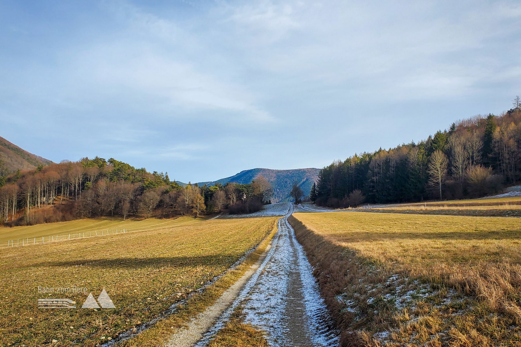 Meine „Neujahrstour“ startet um 7:33 Uhr am Bahnhof Floridsdorf und führt mich mit dem CJX9 (Richtung Payerbach-Reichenau) nach Wiener Neustadt, von wo es um 8:33 Uhr mit dem R97 weiter nach Gutenstein geht. Meinen Tourenstart, den Bahnhof Gutenstein, erreiche ich um 9:27 Uhr.