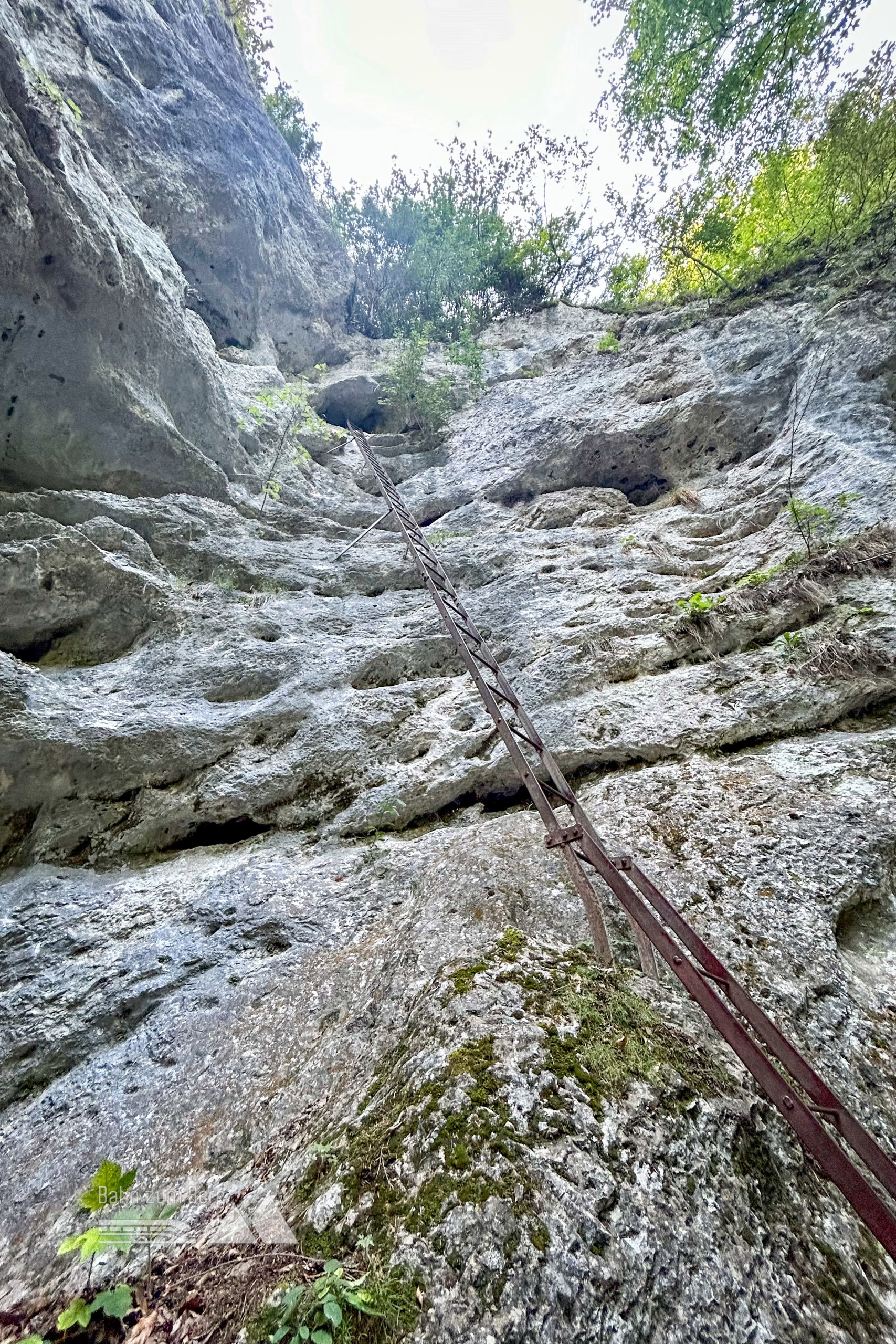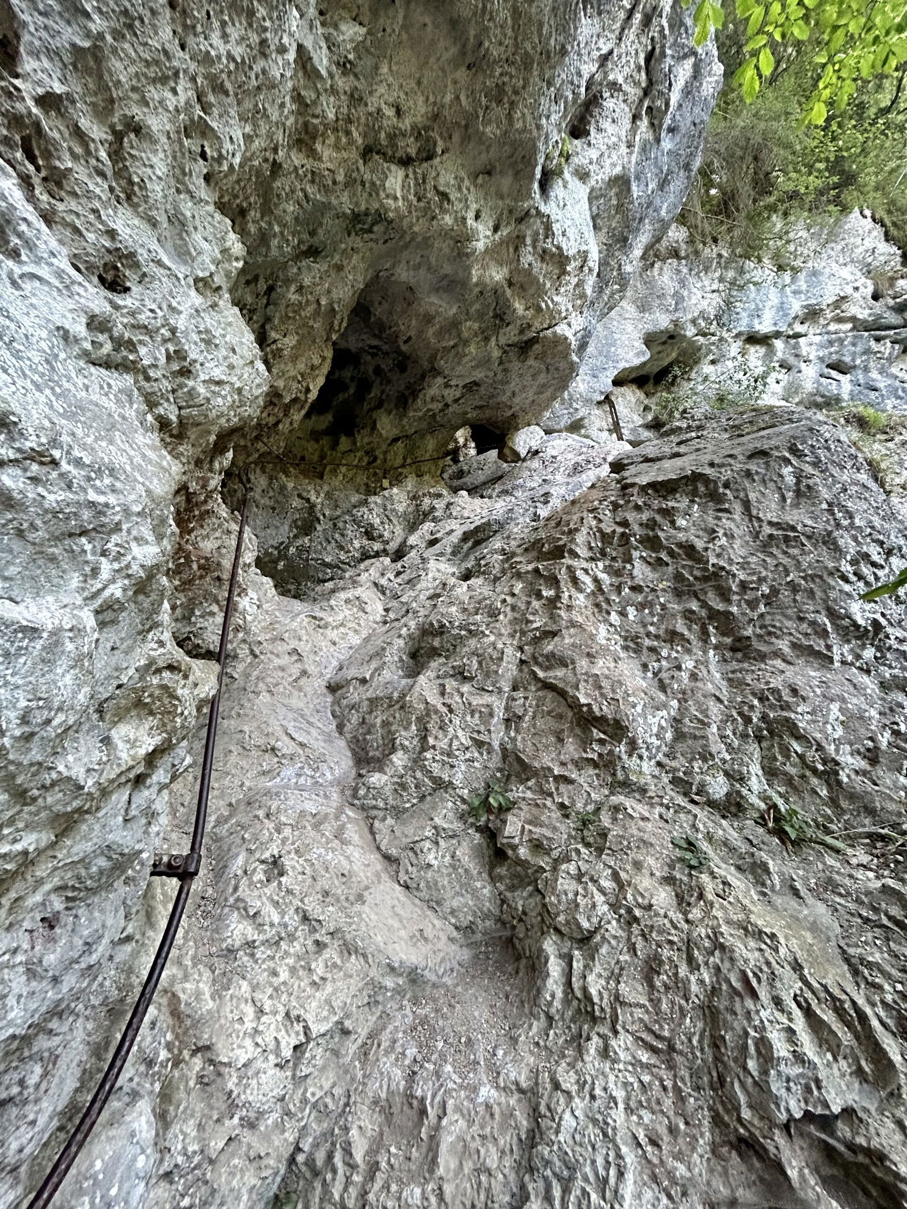 Nach ein paar kurzen Leitern kann man das Klettersteigerlebnis nochmals intensivieren und die wirklich laaaaange Leiter zur Wildschützhöhle hinaufsteigen, durchkraxeln und auf der anderen Seite wieder zum Steig zurückkehren. Dieser Abschnitt ist jetzt wirklich B und ein wenig ausgesetzt. Was ich mich als Kind getraut habe ohne zu zögern, mag ich heute, vor allem weil allein unterwegs, nicht und lasse diese Höhle aus.