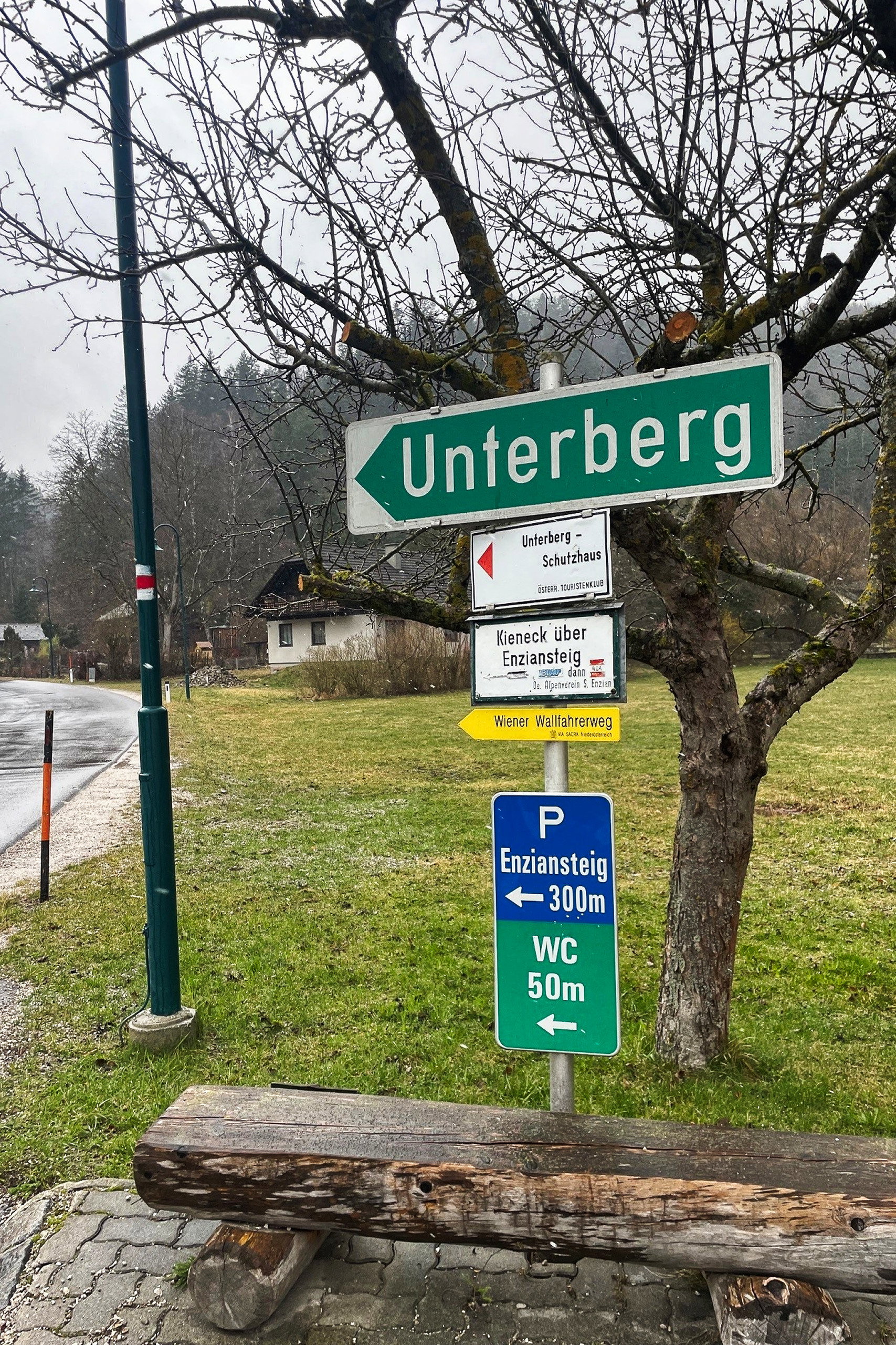 Von dort geht es ein paar Kilometer der Straße entlang. Rechts gibt es bald eine Möglichkeit aufs Kieneck zu gehen, von wo man auch zum Unterberg kommt, aber das wäre eine längere Wanderung.