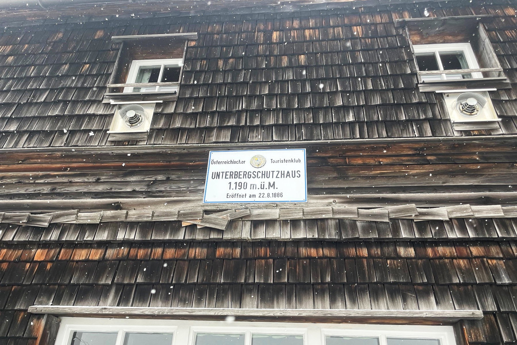 Wenn man es hinauf geschafft hat, geht es zick zack durch den Wald, und bald sieht man schon das Unterbergschutzhaus und könnte auf den Unterberggipfel gehen. Bei dem Schneesturm hab ich das jedoch ausgelassen.