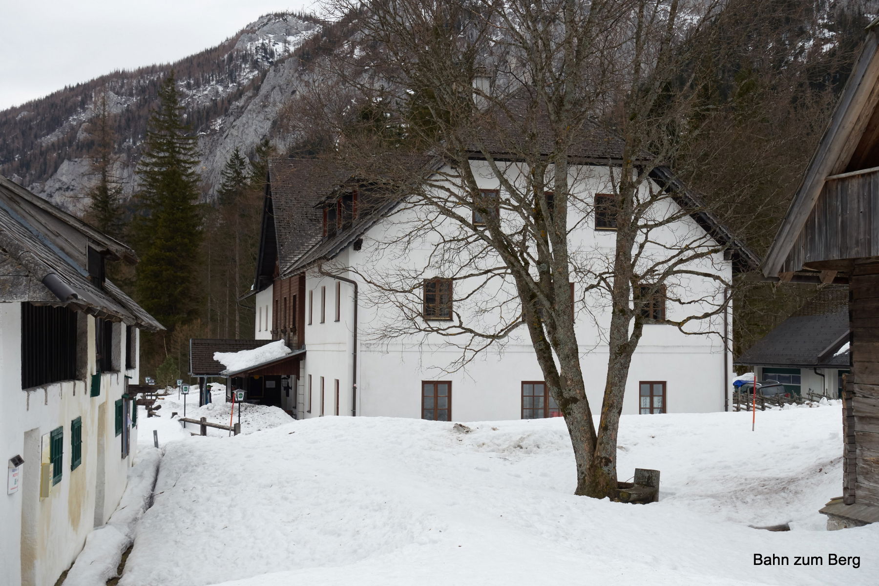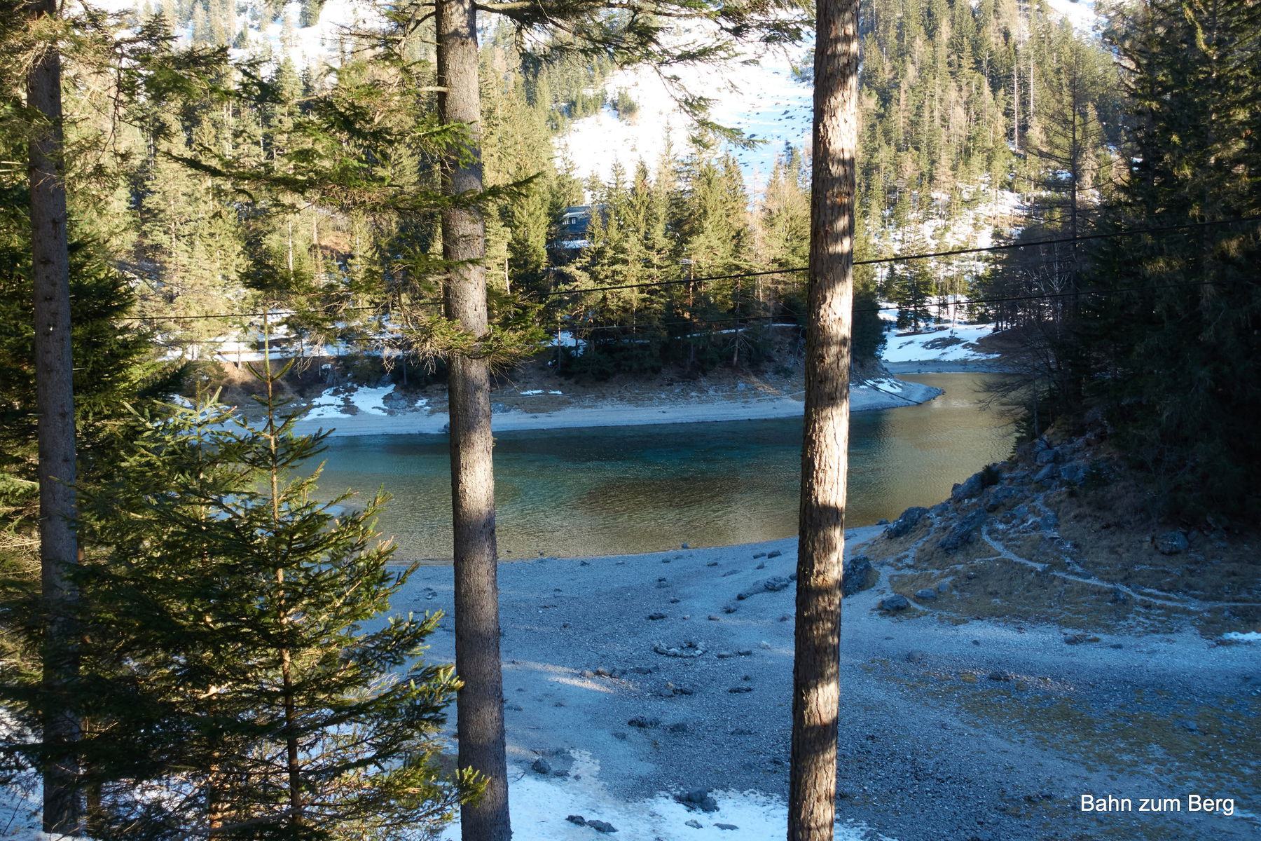 Wie eingangs erwähnt, fährt uns Frau Thaller nach dem Frühstück freundlicherweise zum Grünen See hinauf. Diese Strecke ist weitgehend schneefrei, wir hätten unsere Schneeschuhe und Schi tragen müssen.