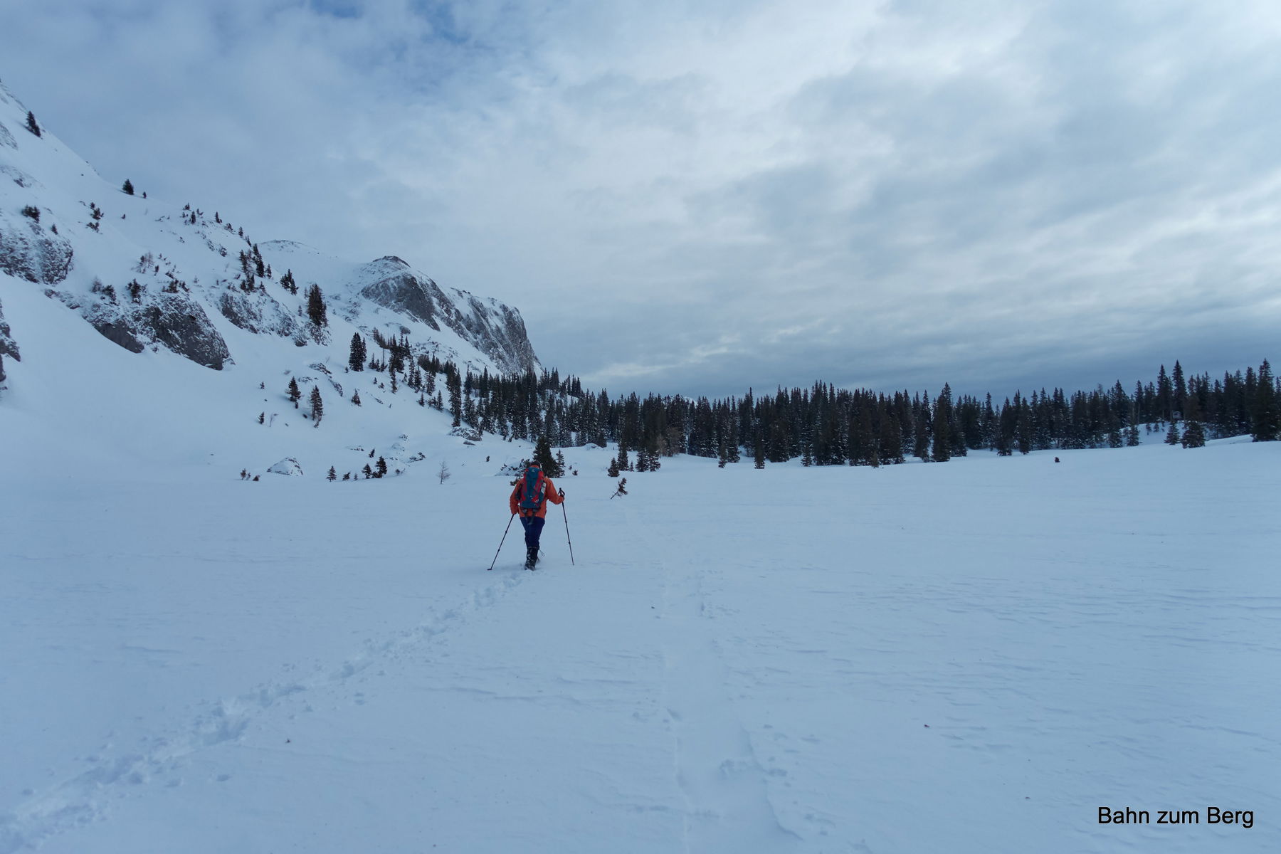 Wir halten uns rechts um auf den Wanderweg zu kommen. Auf diesen schwenken wir ein um nicht selbst spuren zu müssen.