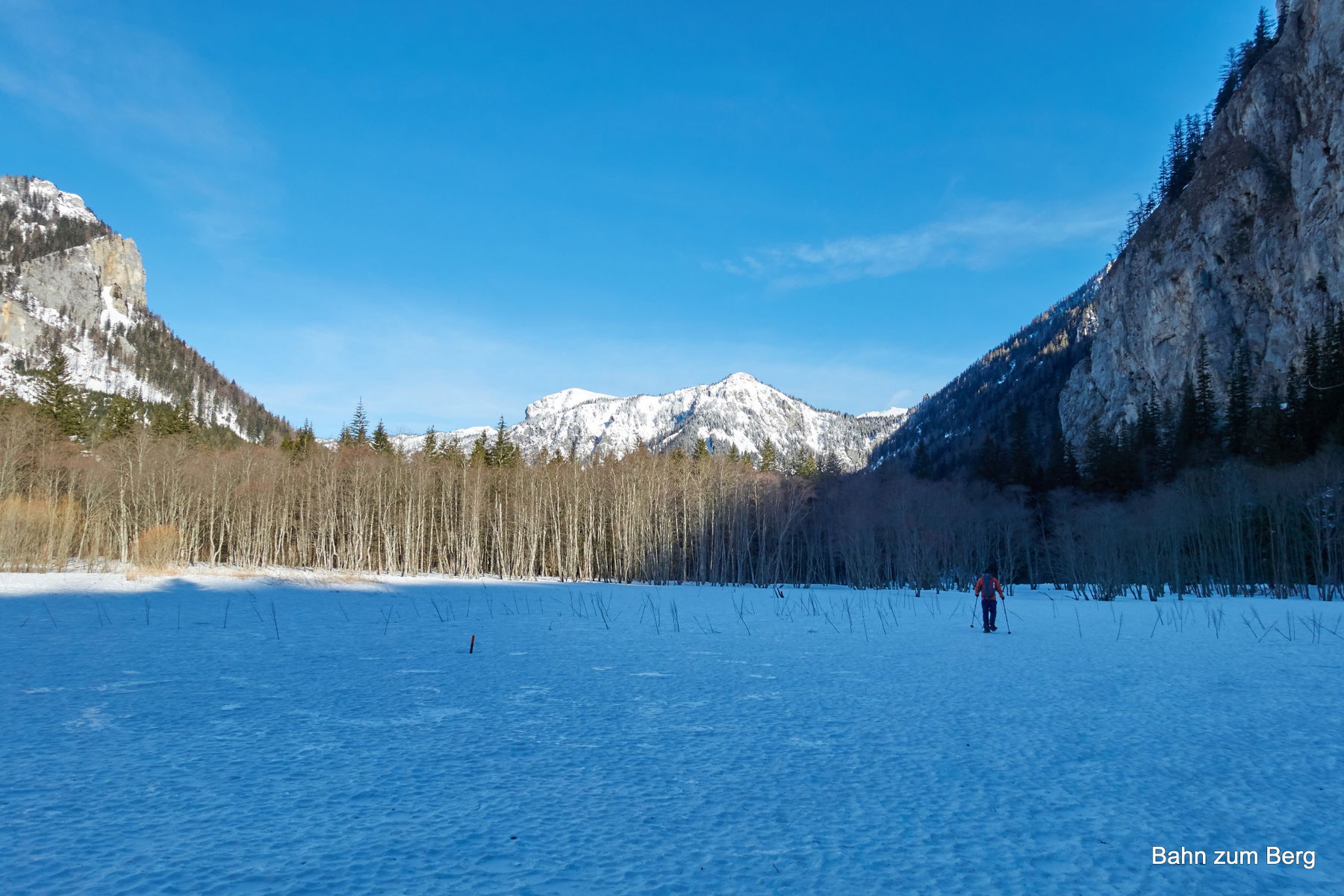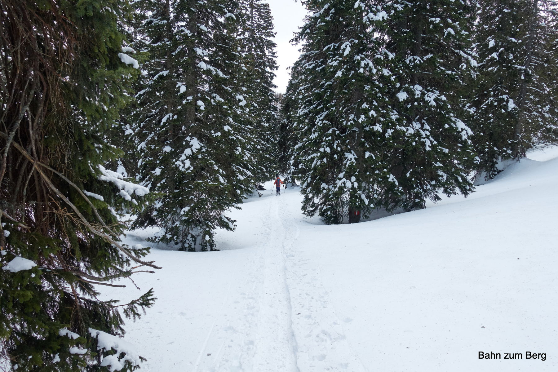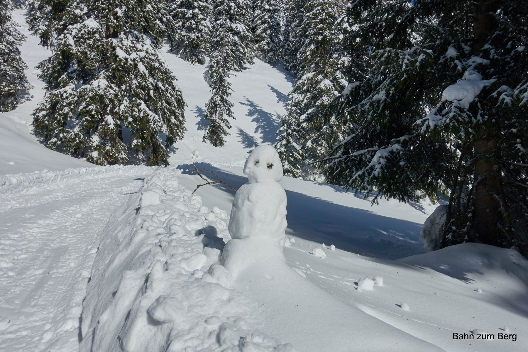 So müssen wir nur die kurze Strecke vom Parkplatz vor dem Grünen See bis zur scharfen Kehre der Straße nach links tragen. Dort zweigt der Wanderweg geradeaus ab und es liegt ab dort durchgängig Schnee.