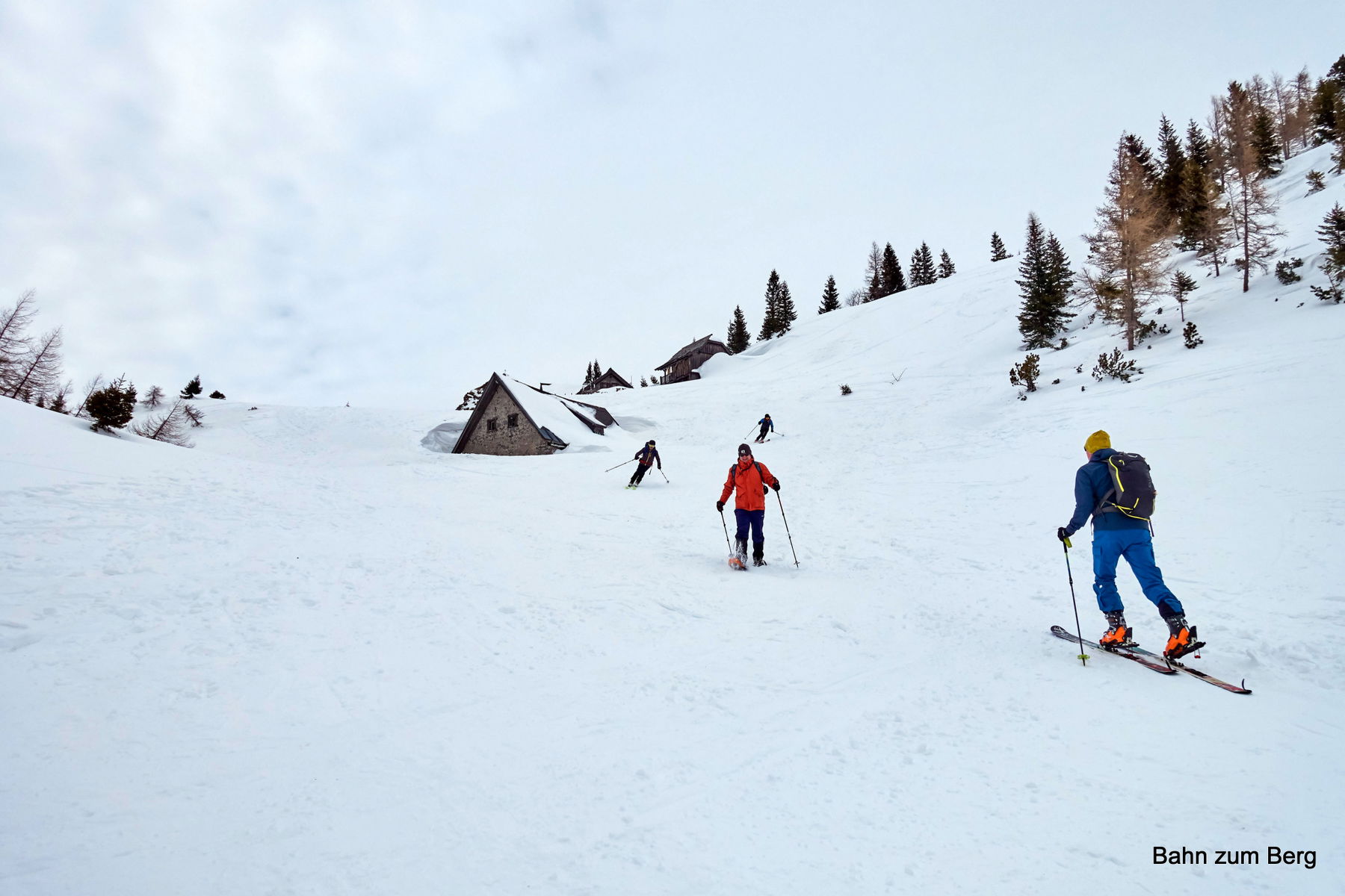 Es liegt hier schon einiges an Schnee. Man merkt das an der Sackwiesenalmhütte, die man am Titelbild oben sieht – oder auch nicht, weil nur mehr der oberste Teil des Rauchfangs heraus schaut!