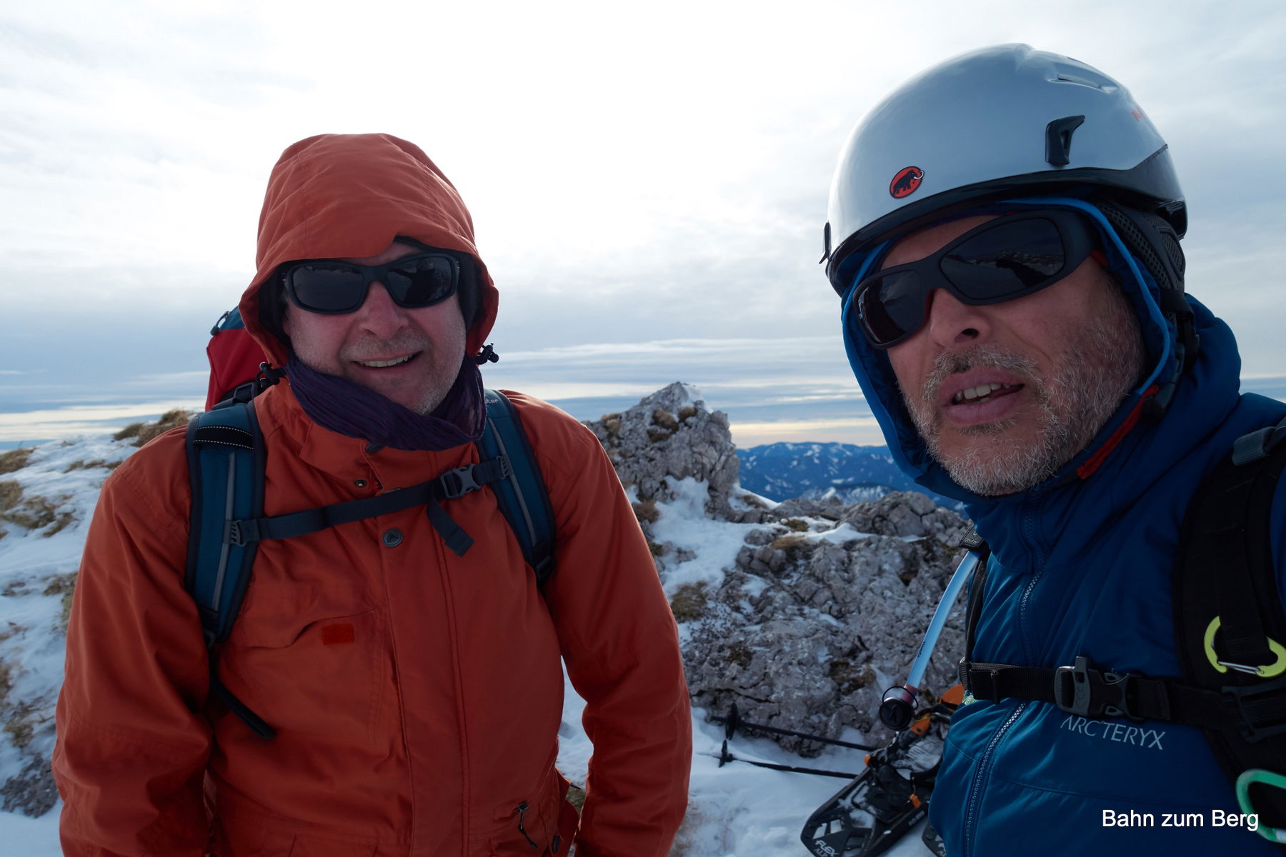 Wir brechen zwar bei der Sonnschienalm auf, gehen aber noch schnell vorher auf den Kleinen Ebenstein hinauf um in den Murmelboden abzusteigen (Didi mit Schneeschuhen) / abzufahren (ich mit Tourenschi).