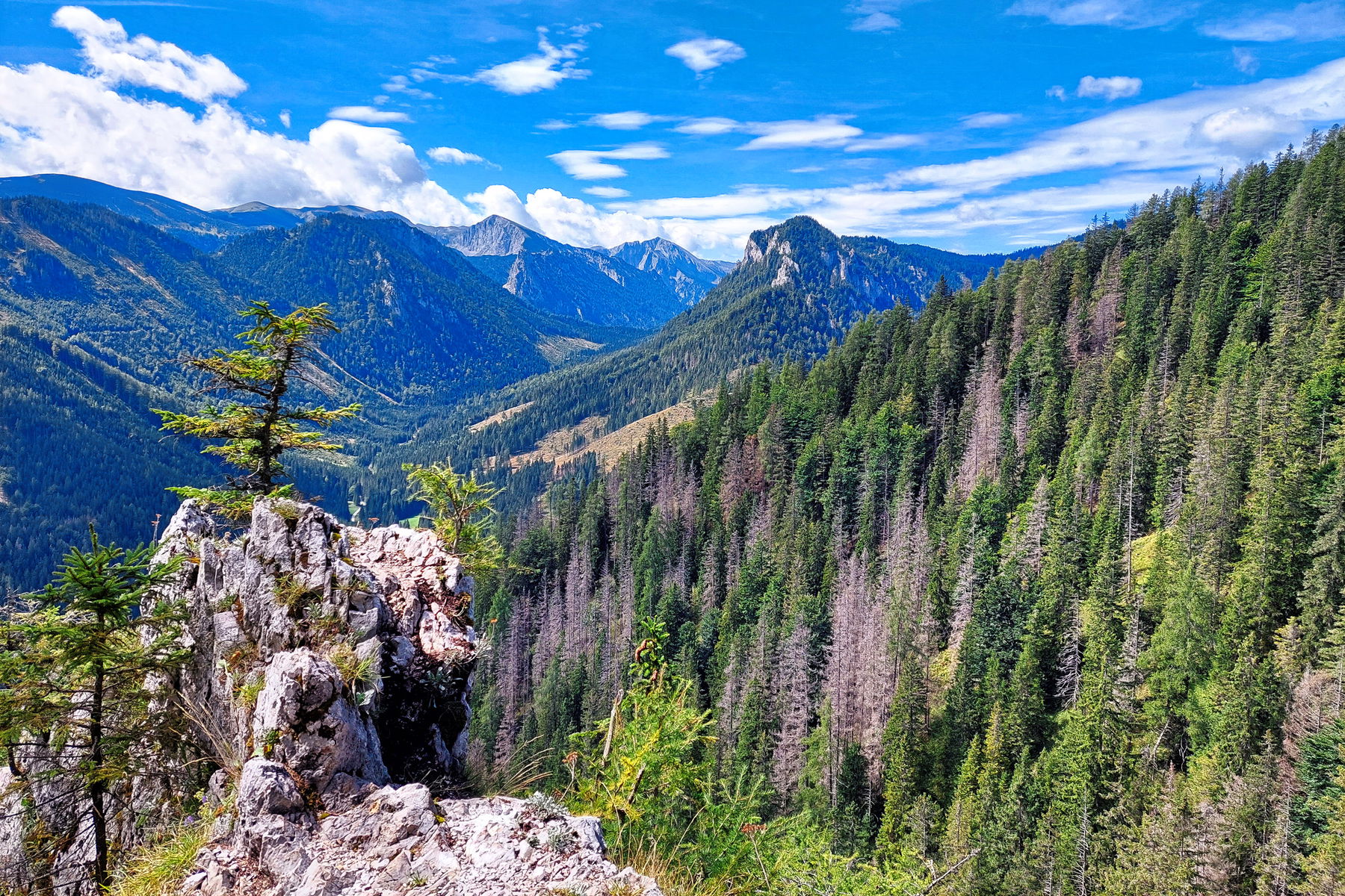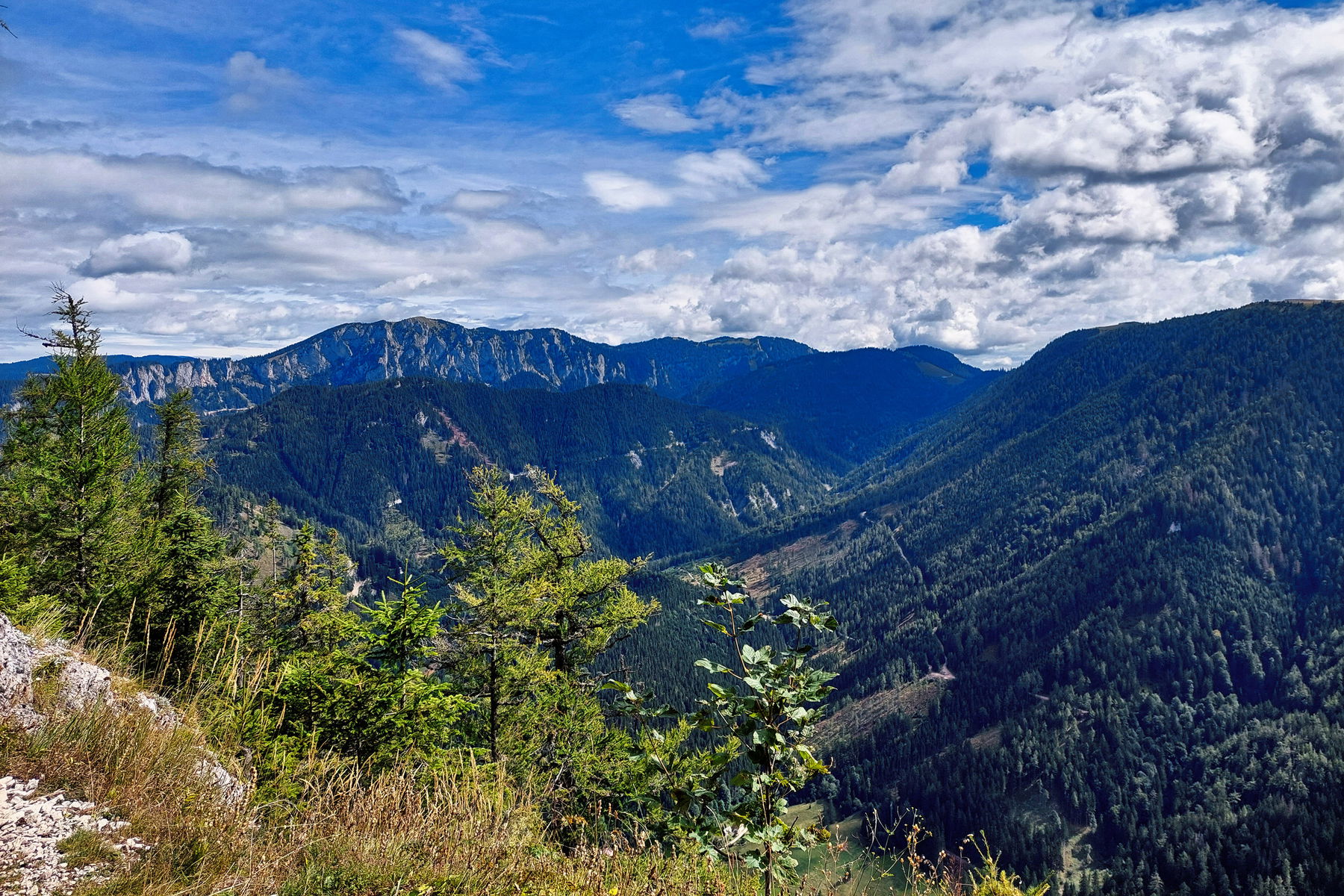 Weiter geht’s bergab bis der Pfad wieder auf den direkten Abstiegsweg stößt. Vom Gipfel bis zur Bushaltestelle brauche ich nicht ganz eine Stunde und habe noch gut 15 Minuten bis mein Bus kommt. Mit dem Bus 170 fahre ich bis Kapfenberg – die Strecke ist sehr schön, man fährt am Hochschwab vorbei. Ab Kapfenberg geht es direkt mit dem Zug nach Graz und dann wieder mit dem Bus in die Oststeiermark.