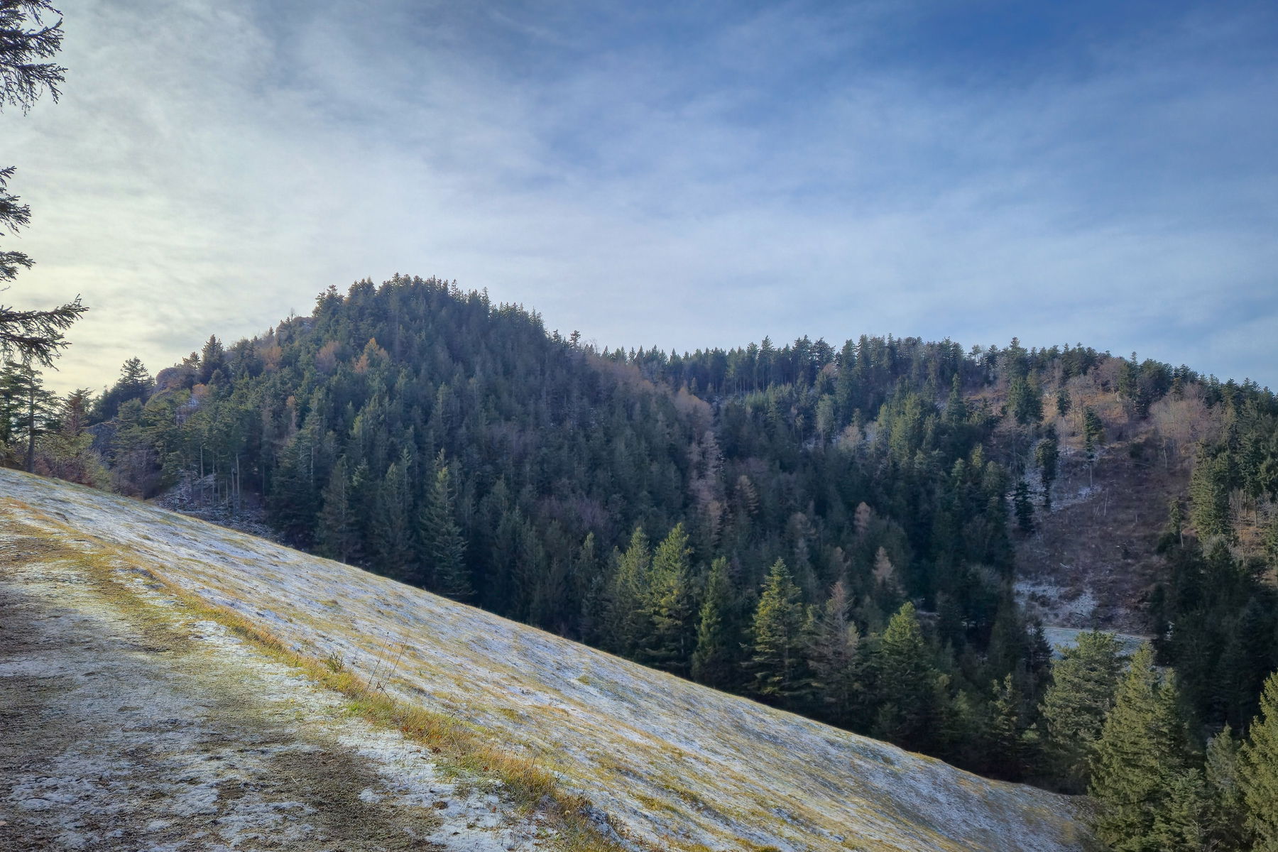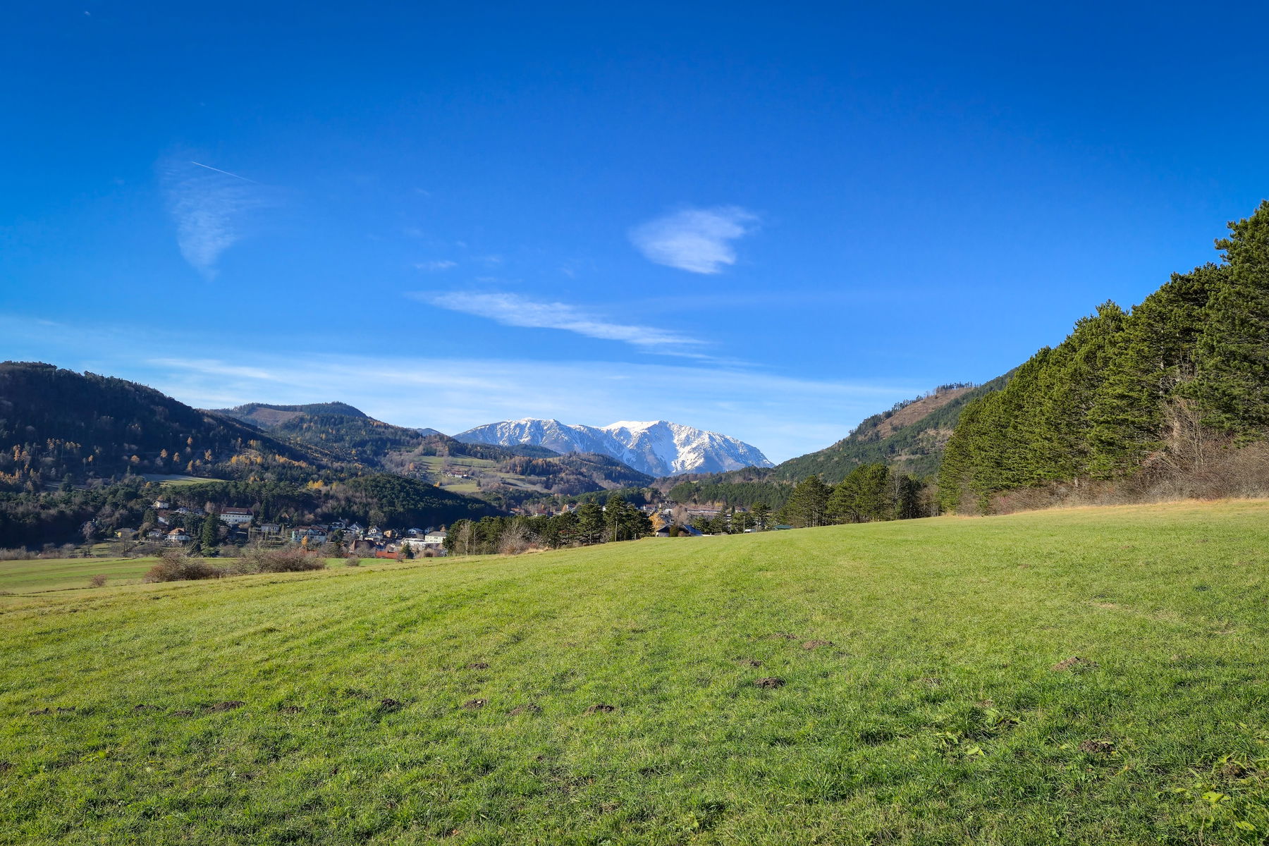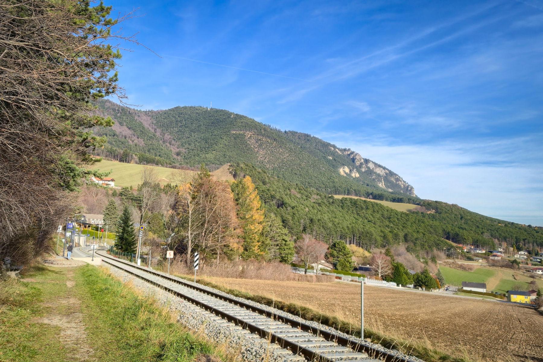 Mitte November geht es für mich mal wieder zur Hohen Wand. Die Tour gehe ich nicht zum ersten Mal, aber einen Tourenbericht habe ich tatsächlich bis jetzt nicht verfasst. Mein Tag startet recht gemütlich und ich fahre mit dem CJX9 um 8:33 Uhr von Wien Floridsdorf nach Wr. Neustadt, wo ich den R98, aufgrund von 10 Minuten Verspätung des CJX9, gerade noch erwische. Um 10:10 Uhr komme ich (pünktlich) am Bahnhof Grünbach am Schneeberg an, wo meine Tour startet. Die Tour führt zuerst zur Eicherthütte hinauf und geht dann weiter über einen Abstieg und einen erneuten Aufstieg zum Geländ im Westen der Hohen Wand. Vom Geländ steige ich ab zum Bahnhof Grünbach am Schneeberg Schule, von wo es für mich um 13:47 Uhr (pünktlich) zurück nach Wien geht. Für die Tour brauche ich mit zwei kürzeren Snackpausen 3,5 Stunden.