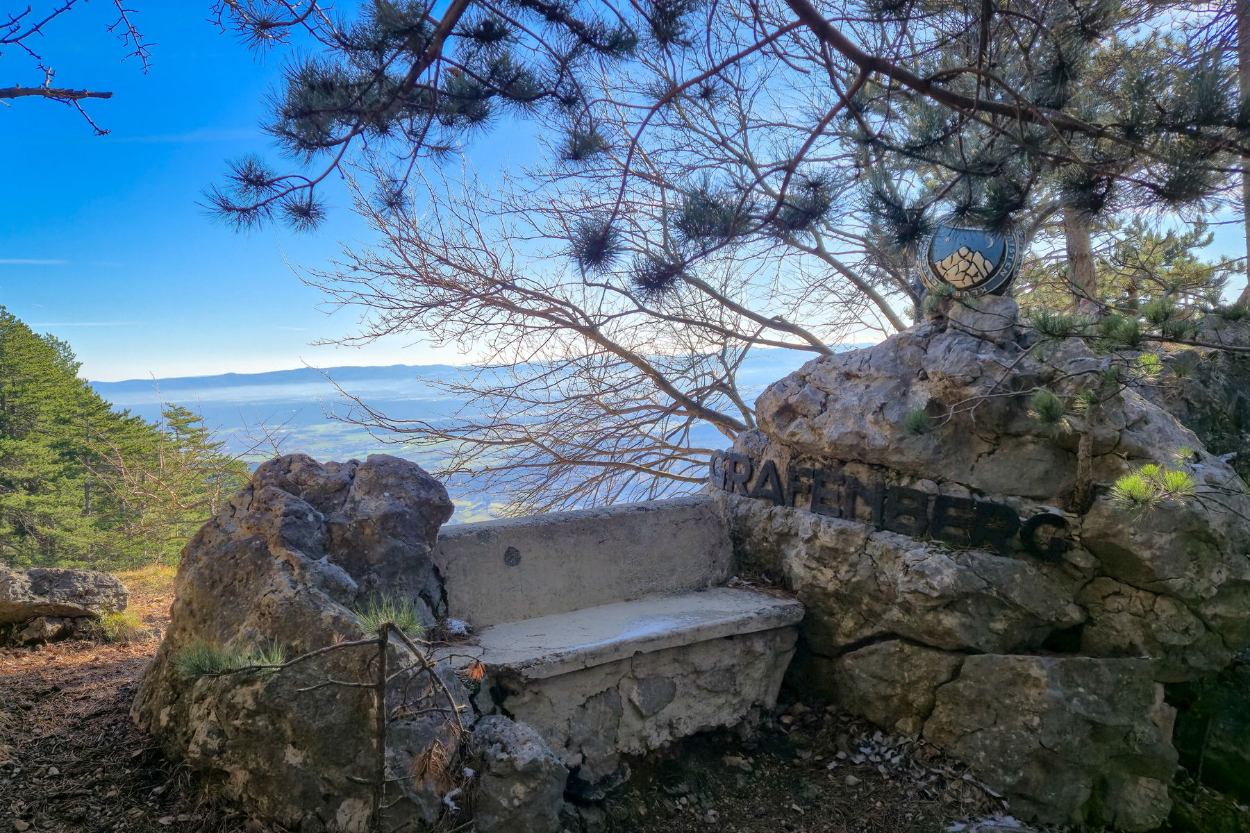 Über den Grafenbergweg geht es weiter eher steil bergauf und nach bereits einer Stunde sehe ich die Eicherthütte vor mir. Nachdem der Aufstieg viel schneller war als geplant, habe ich mir oben eine längere Pause in der Sonne gegönnt, denn der Ausblick auf den Schneeberg über die „Große Kanzel“ ist einfach zu schön.