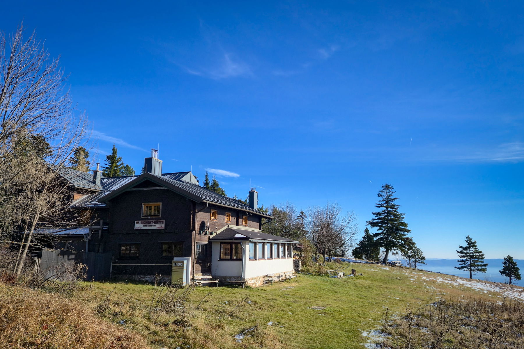 Schon bald sehe ich die Geländehütte vor mir und weiß, dass ich mein nächstes Ziel erreicht habe. Auch hier nehme ich mir nochmal Zeit für eine Pause, welche aufgrund des kalten Novemberwinds allerdings kürzer ist.