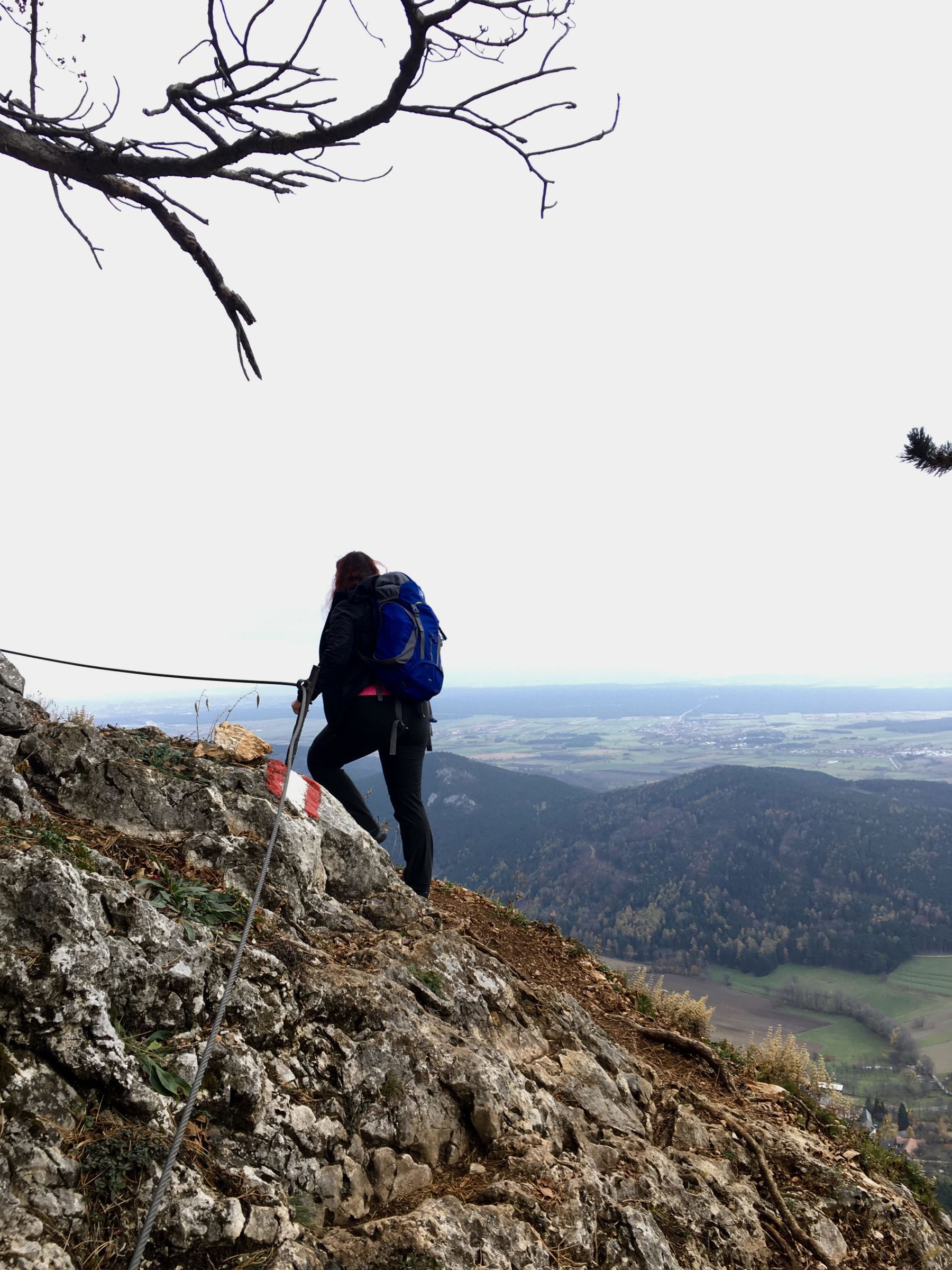 Der Springlessteig ist ein einfacher Klettersteig (A), aber fast eher ein versicherter Wanderweg. Es gibt eine kurze Leiter und zwei leicht ausgesetzte Stellen, wo der Weg aber recht breit ist. Um die Aussicht zu genießen und zu fotografieren, bleiben wir aber trotzdem lieber stehen. Martin Heppner hat den Springlessteig in einem Beitrag genauer beschrieben.