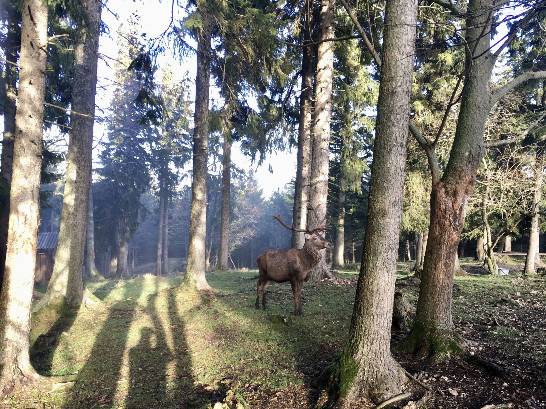 Am Weg kommen wir bei einem riesigen Gatter für Rotwild vorbei. Sieht leer aus.