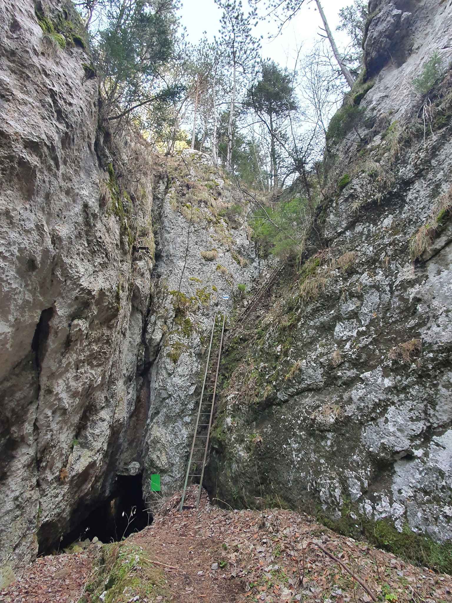 Am Ende vom Saugraben wählt man an der Abzweigung den Weg durch die Große Klause(A). Hinunter geht es über einige Leitern, die zwar keine groben Schwierigkeiten darstellen, aber trotzdem Trittsicherheit und Aufmerksamkeit verlangen (Vorsicht bei Nässe!).