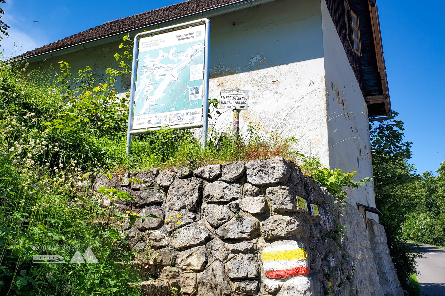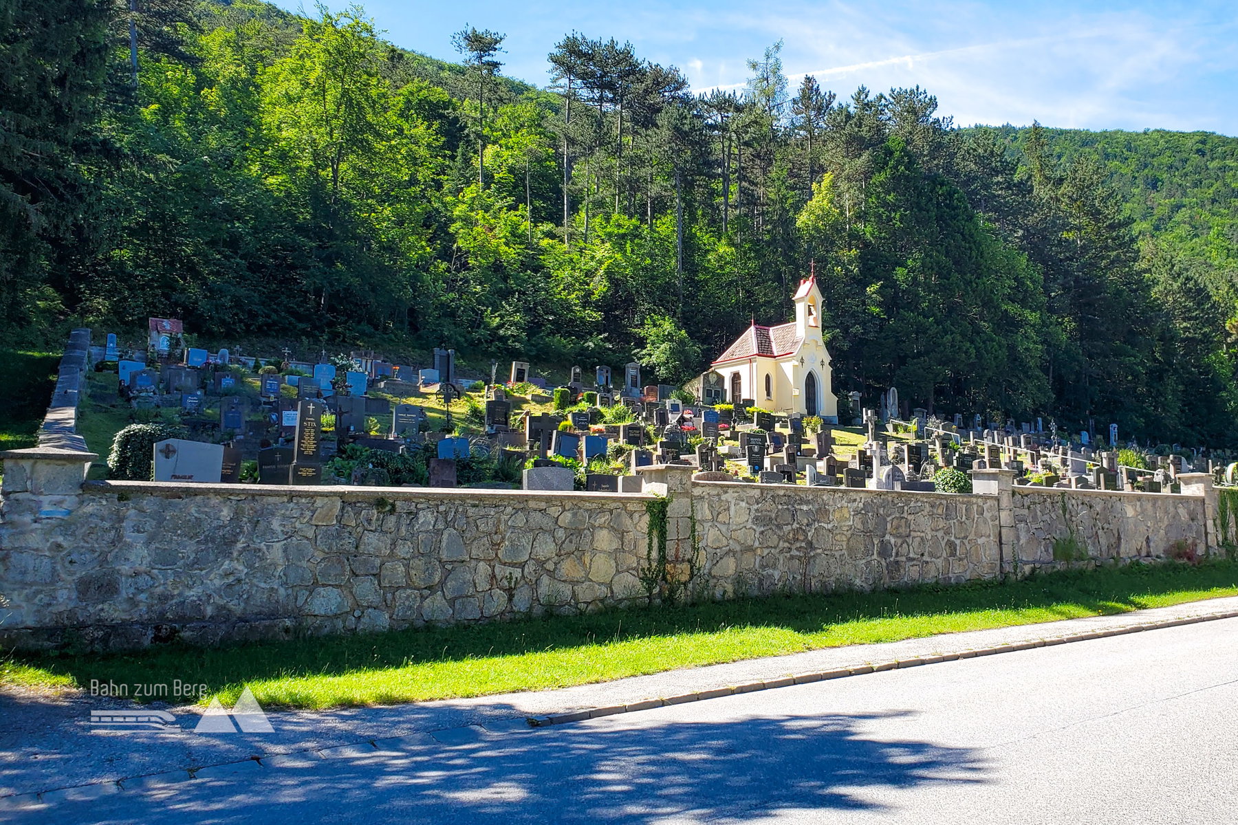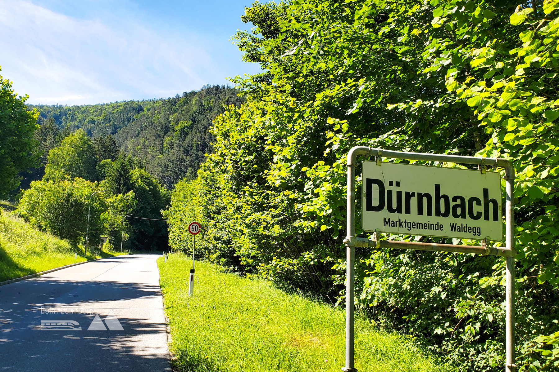 Um 8:40 Uhr ging es für mich vom Praterstern mit dem CJX9 (Richtung „Payerbach-Reichenau“) nach Wr. Neustadt. Am Bahnhof in Wr. Neustadt bin ich in den R97 Richtung „Gutenstein umgestiegen“. An der Haltestelle Waldegg-Dürnbach Bahnhof bin ich ausgestiegen. Vom Bahnsteig geht es nach links (vorbei an einer Bushaltestelle) und dann direkt rechts hinauf vorbei an einem Friedhof.