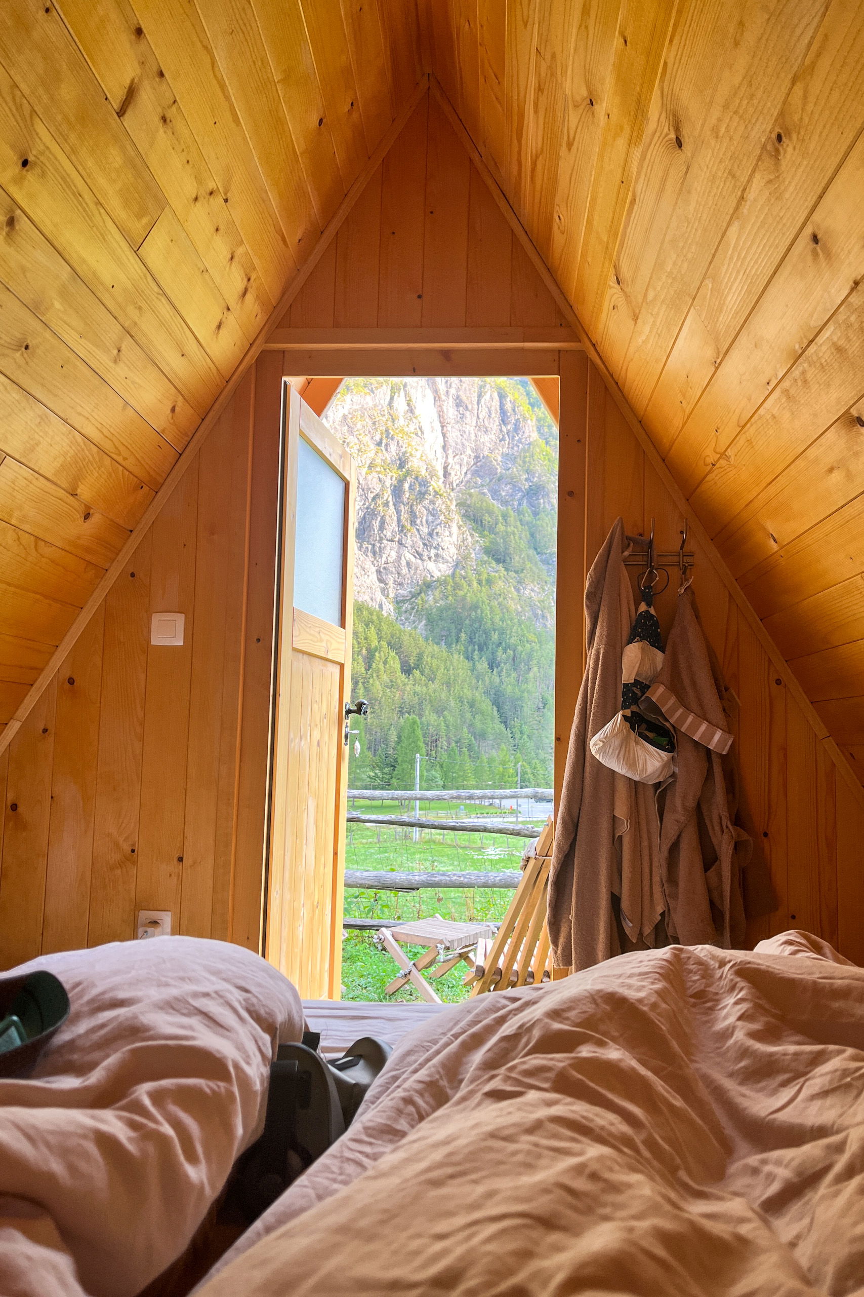 Gegen 14 Uhr kommen wir bei unserer Unterkunft, dem Bio-Bauerhof ‚Pri Plajerju‘, an und schlafen dort in einem Holzzelt. Man muss definitiv reservieren, ansonsten gibt es noch andere Unterkünfte entlang der Soča. Wir bleiben zwei Nächte, weil es schön ist, Tiere gibt und das Essen großartig ist. Wir haben schließlich Urlaub.