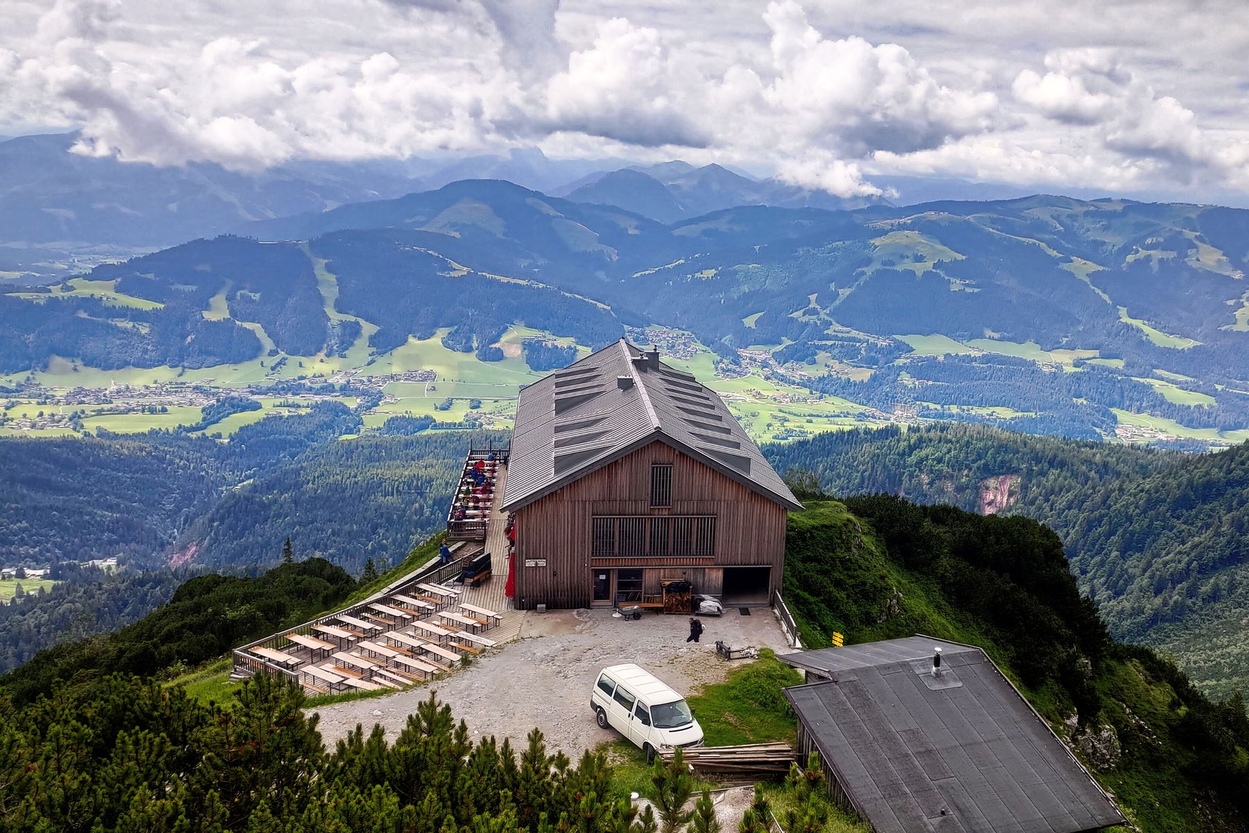 Mit dem Bus 4060 in Richtung Söll fahren wir von St. Johann/Tirol nach Ellmau Dorf/Bauhof. In Ellmau steigen wir in den Wanderbus auf die Wochenbrunner Alm um, welcher uns einige Kilometer und Höhenmeter abnimmt.