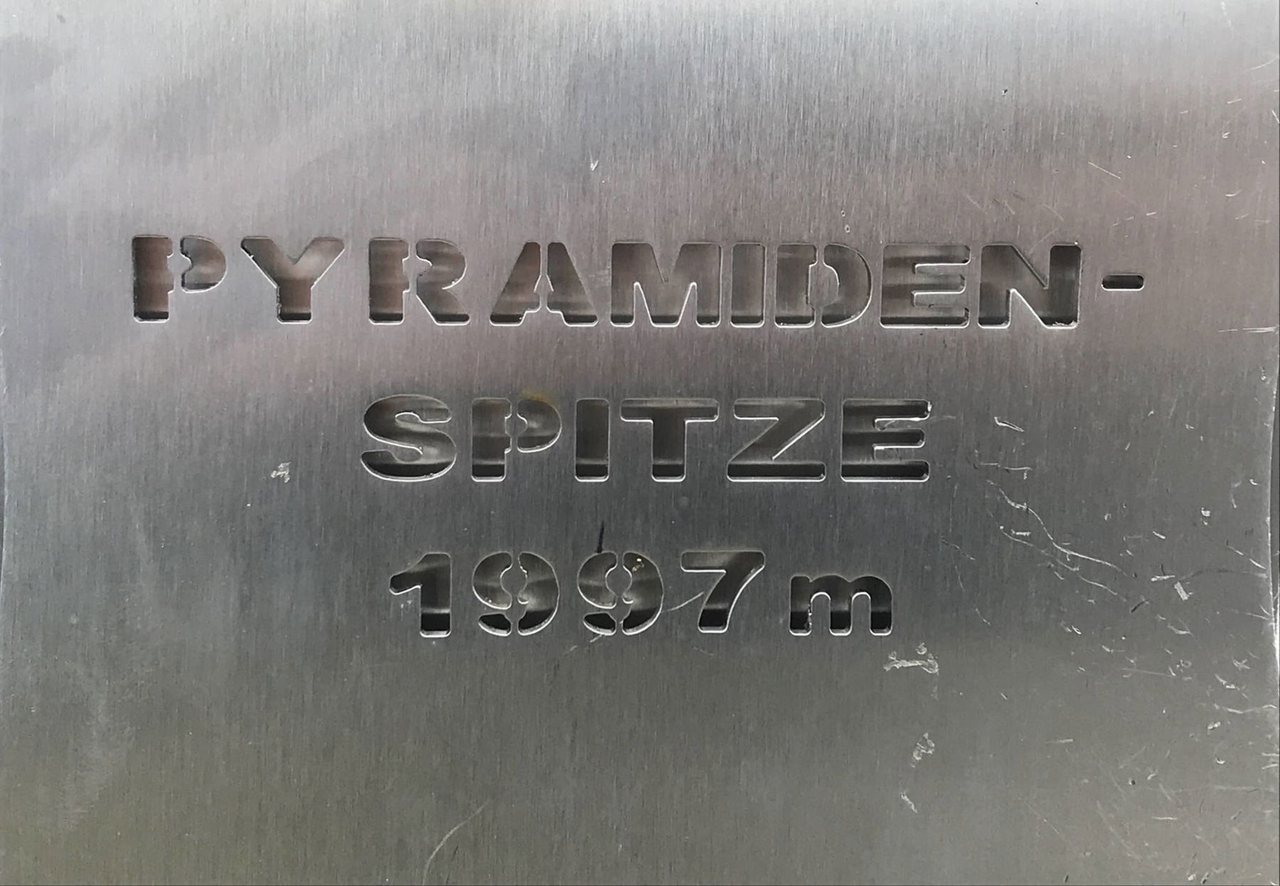 Am Gipfel der Pyramidenspitze treffe ich eine Bayerin, die auf dem Normalweg von Durchholzen (UIAA I bzw. Klettersteig B) aufgestiegen ist.