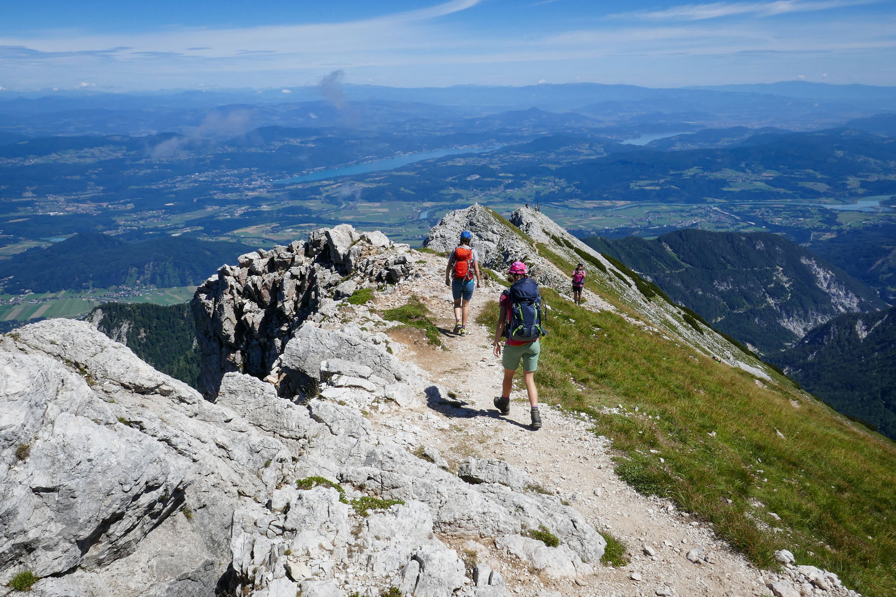 Ab hier verläuft die Route weitestgehend am Grat. Mittlerweile können wir fast den gesamten weiteren Rotuenverlauf bis zum Mittagskogel einsehen. Das lässt die Vorfreude jedenfalls steigen.