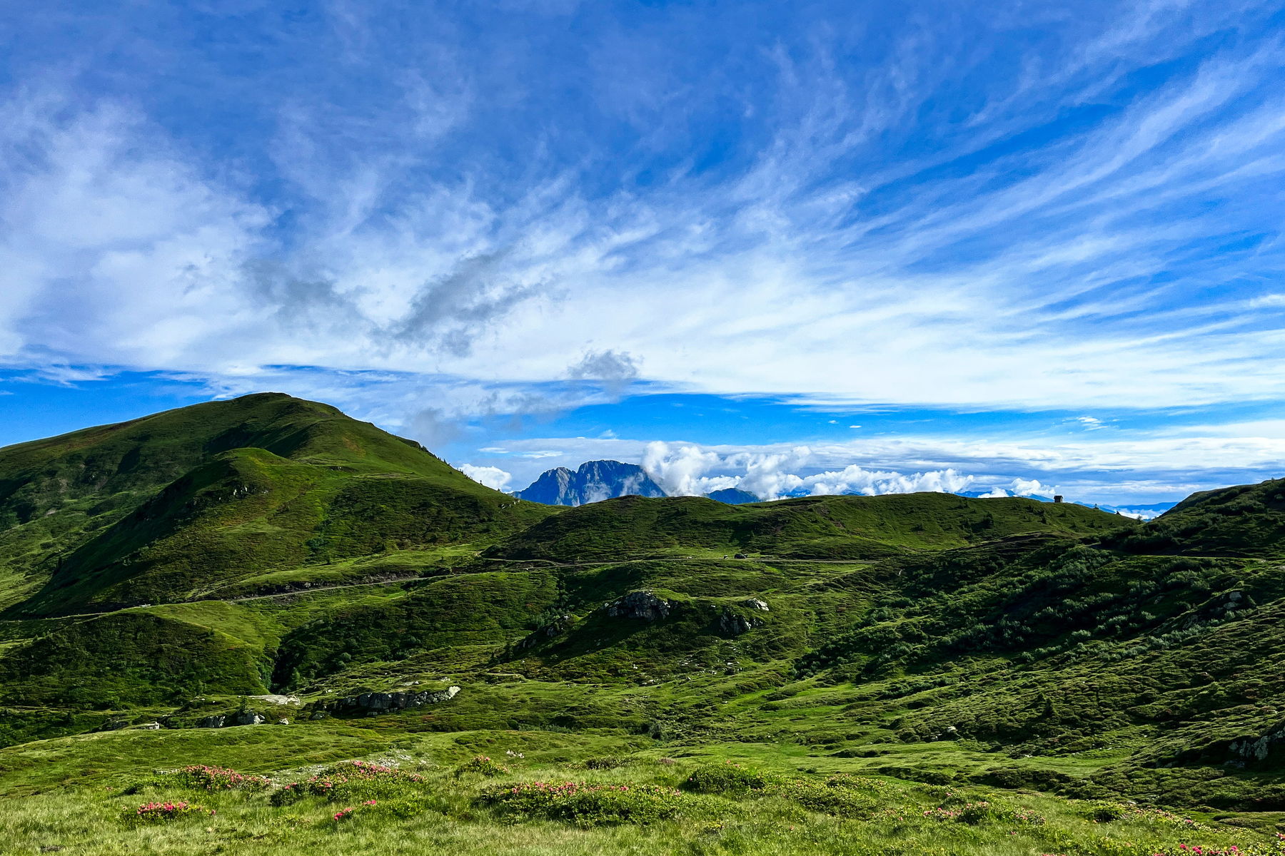 Wir starten früh morgens und wandern am Plateau durch die schöne Almlandschaft und anschließend bergab.