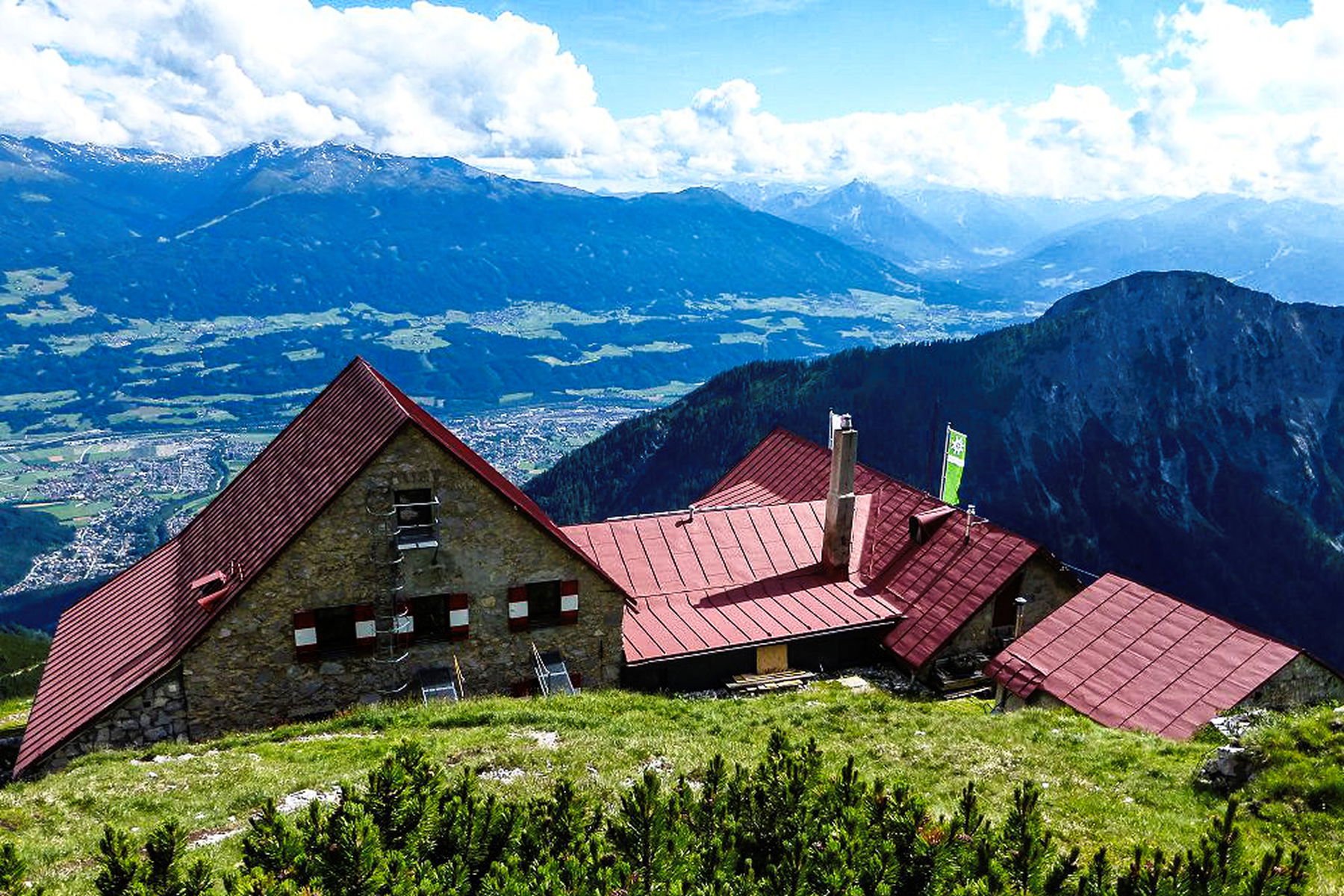 Bettelwurfhütte (2077 Meter), geöffnet von Anfang Juni bis Mitte Oktober, +43 5223 53353, info@bettelwurfhuette.at, www.bettelwurfhuette.at