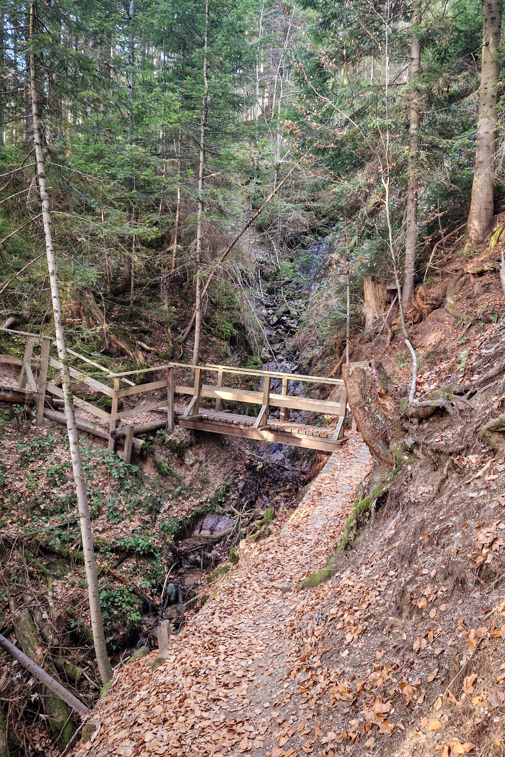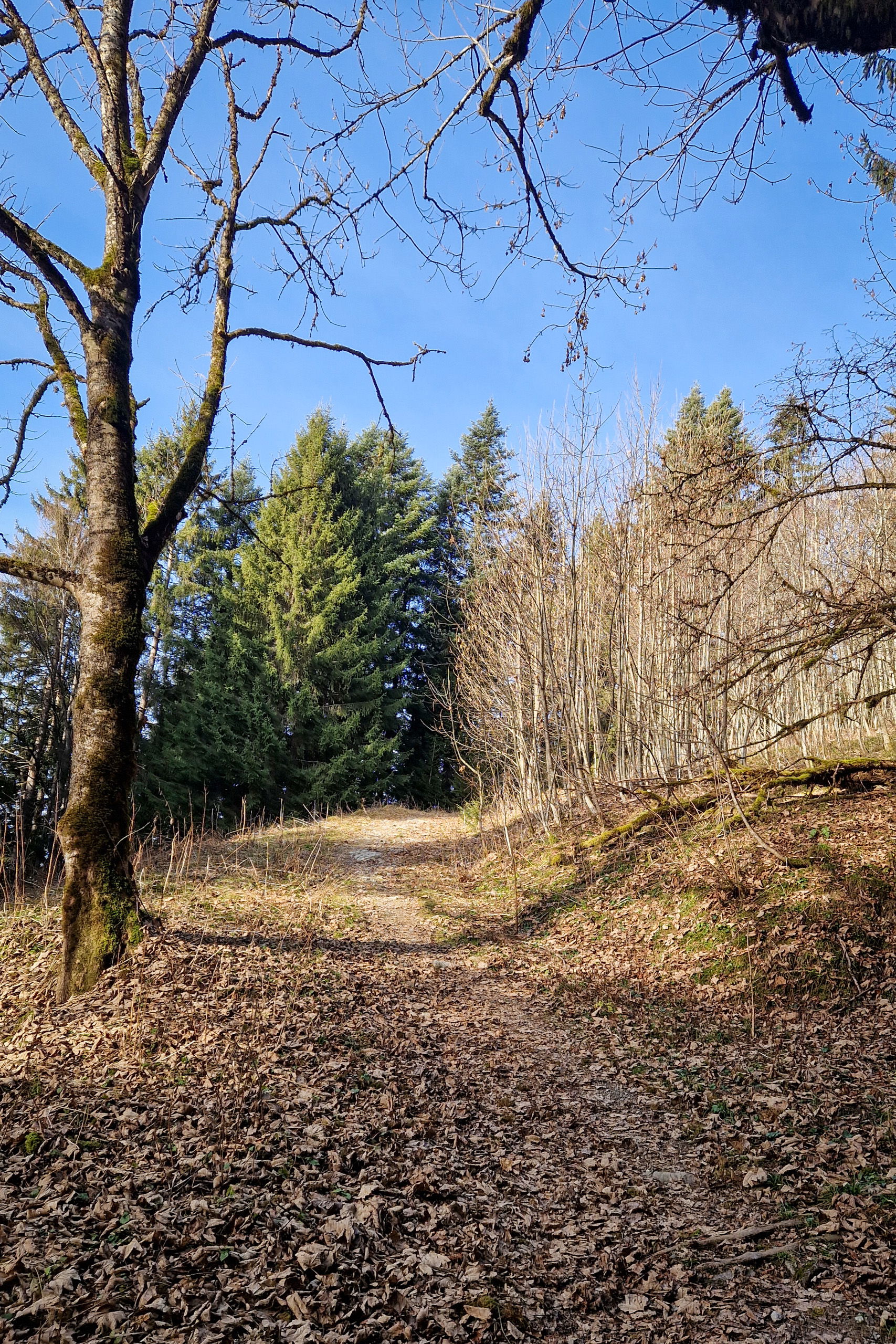 An der Bahnschranke gehst du über die Gleise, geradeaus den Hornweg weiter und biegst an der Gabelung halbrechts in den Hagsteinweg. Nach einer Kehre ist der Weg zur Adlerhütte beschildert, er biegt bei einem Bauernhof rechts von der Fahrstraße ab und wird ein hübscher Waldweg.