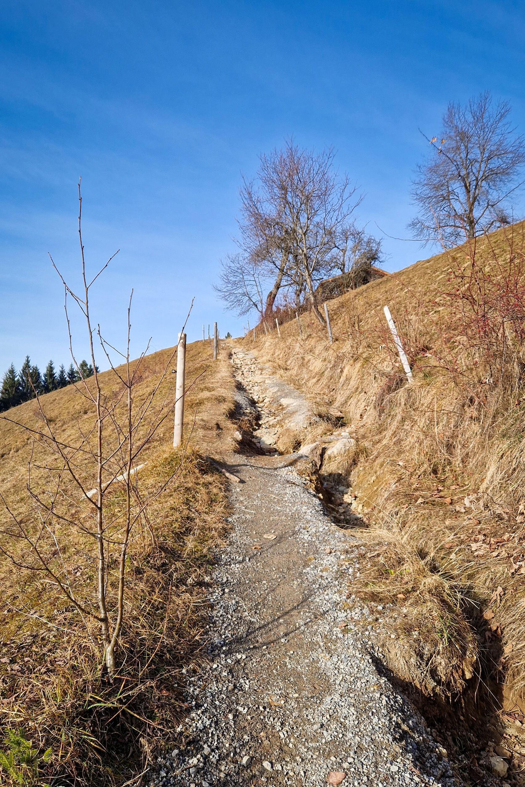 Dieser führt konstant steil bergauf. Kurz vor der Adlerhütte geht es an einem weiteren Bauernhofgebäude rechts weiter. Die Adlerhütte liegt auf 1.250 Metern, dein Aufstieg beträgt 530 Höhenmeter. Die Gehzeit ist eine gute Stunde, max. anderthalb.