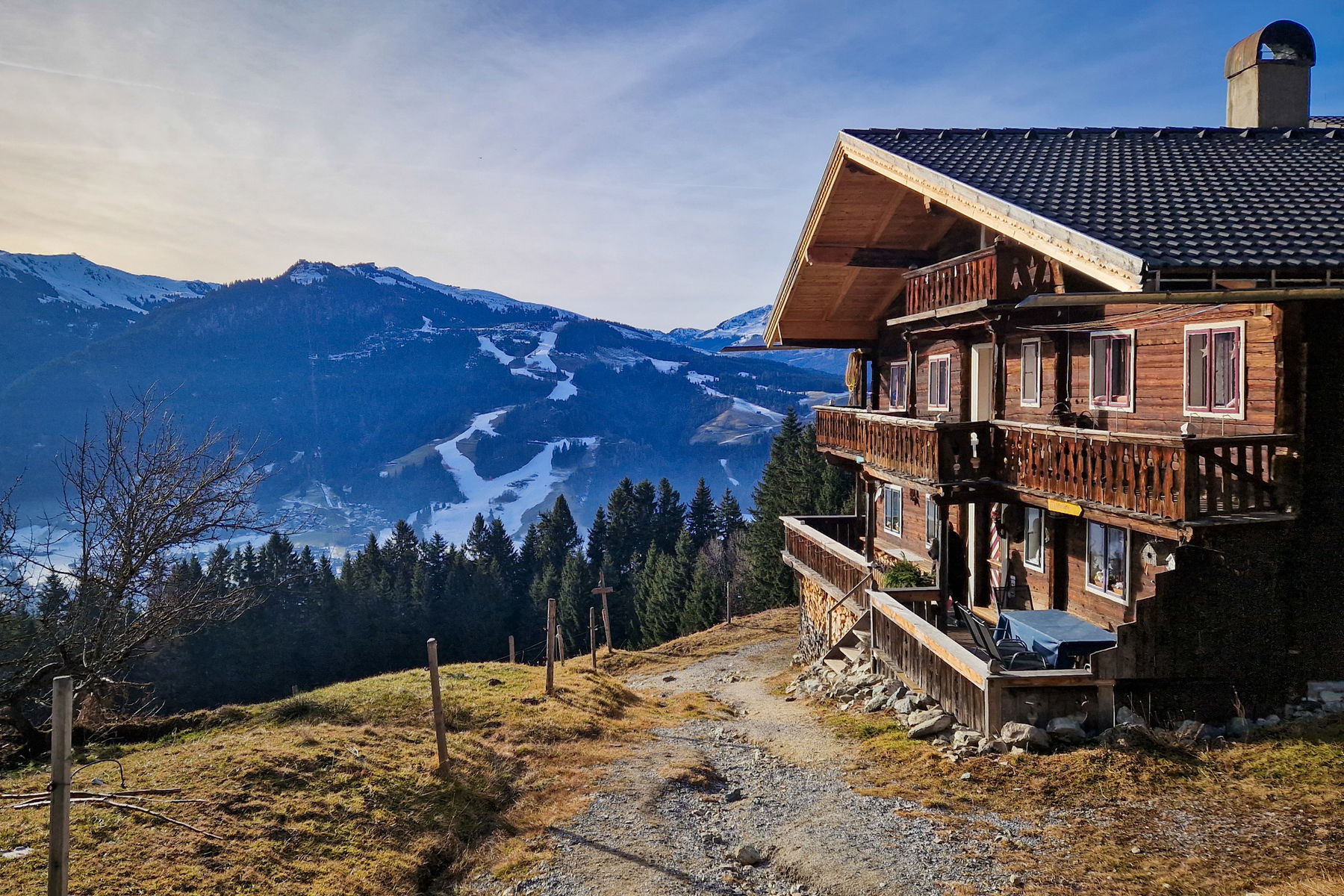 Eine aus dem Münchner oder Salzburger Raum gut mit der Bahn erreichbare kleine Winterwanderung ist die Tour von Kitzbühel zur Adlerhütte. Kaiser-Panorama inklusive.