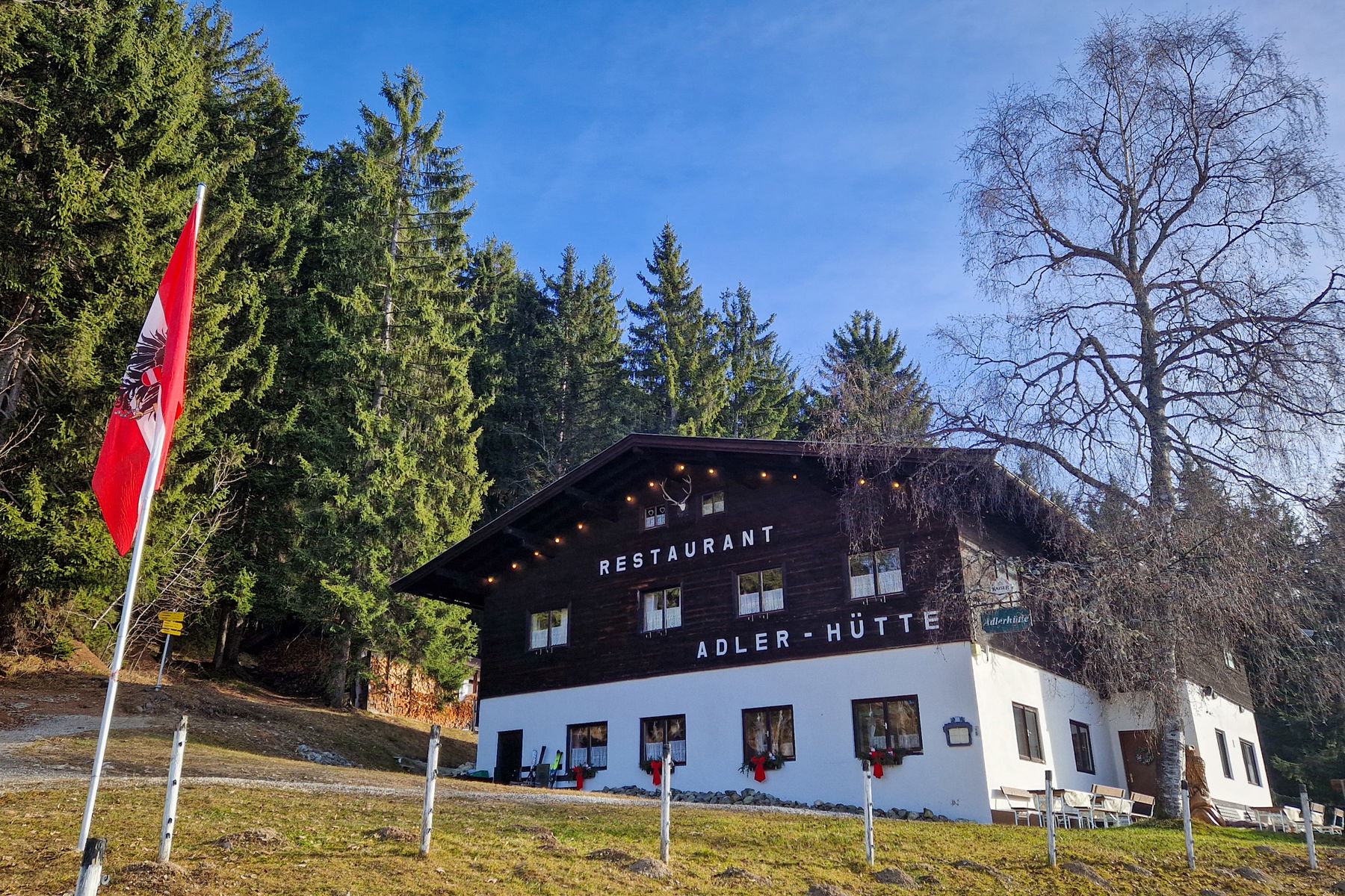 In der Adlerhütte ist eine Einkehr sehr empfehlenswert. Das sehr nette Hüttenteam bietet als Spezialität Forellen aus eigener Zucht in verschiedener Zubereitung. Auch für andere Geschmäcker gibt es eine schöne Auswahl zu moderaten Preisen, für Kitzbühel eher günstig.