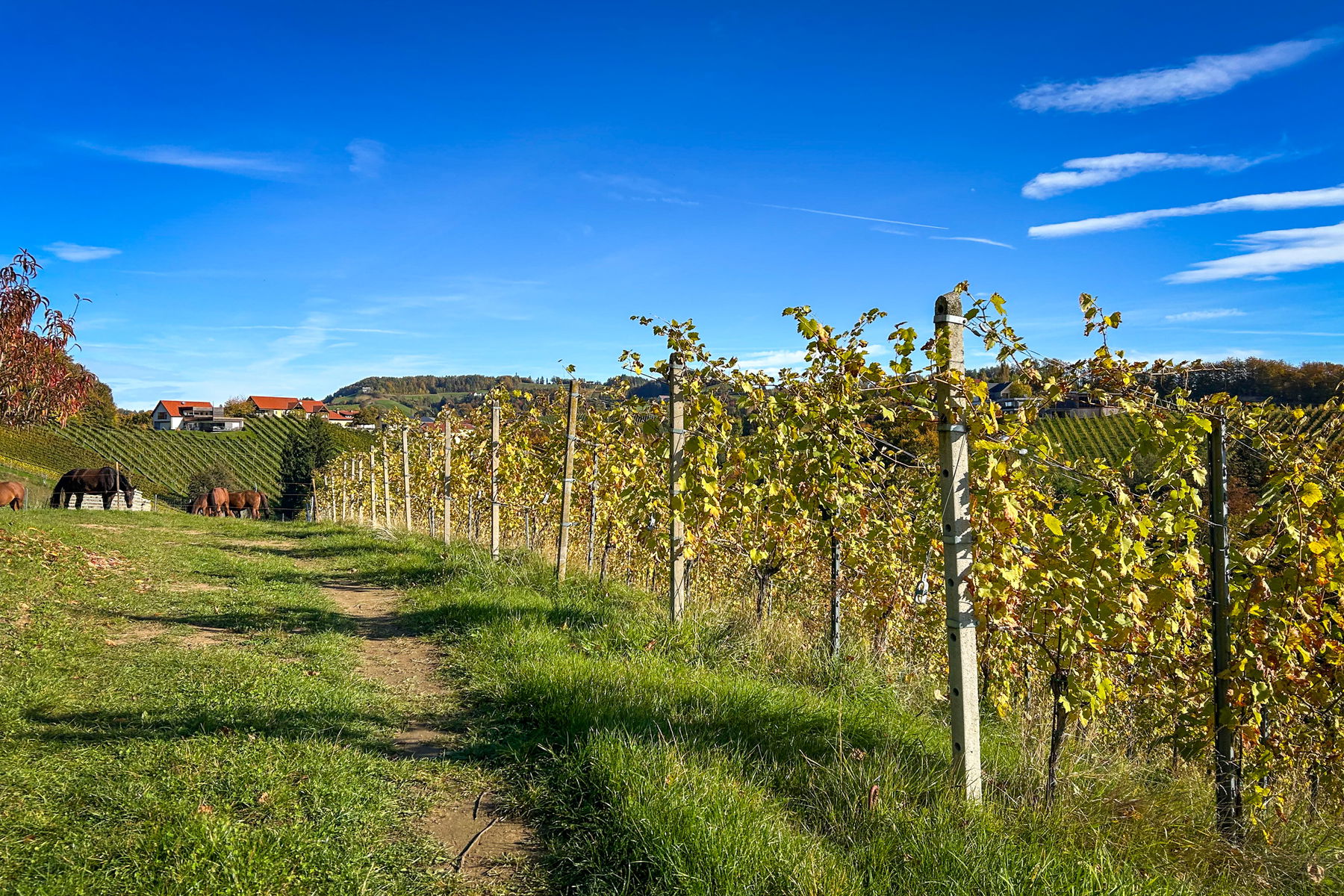Danach führt der Weg abwärts Richtung Großklein, wo man über kleine Güterwege und Weingärten den Talboden des Saggautals erreicht.