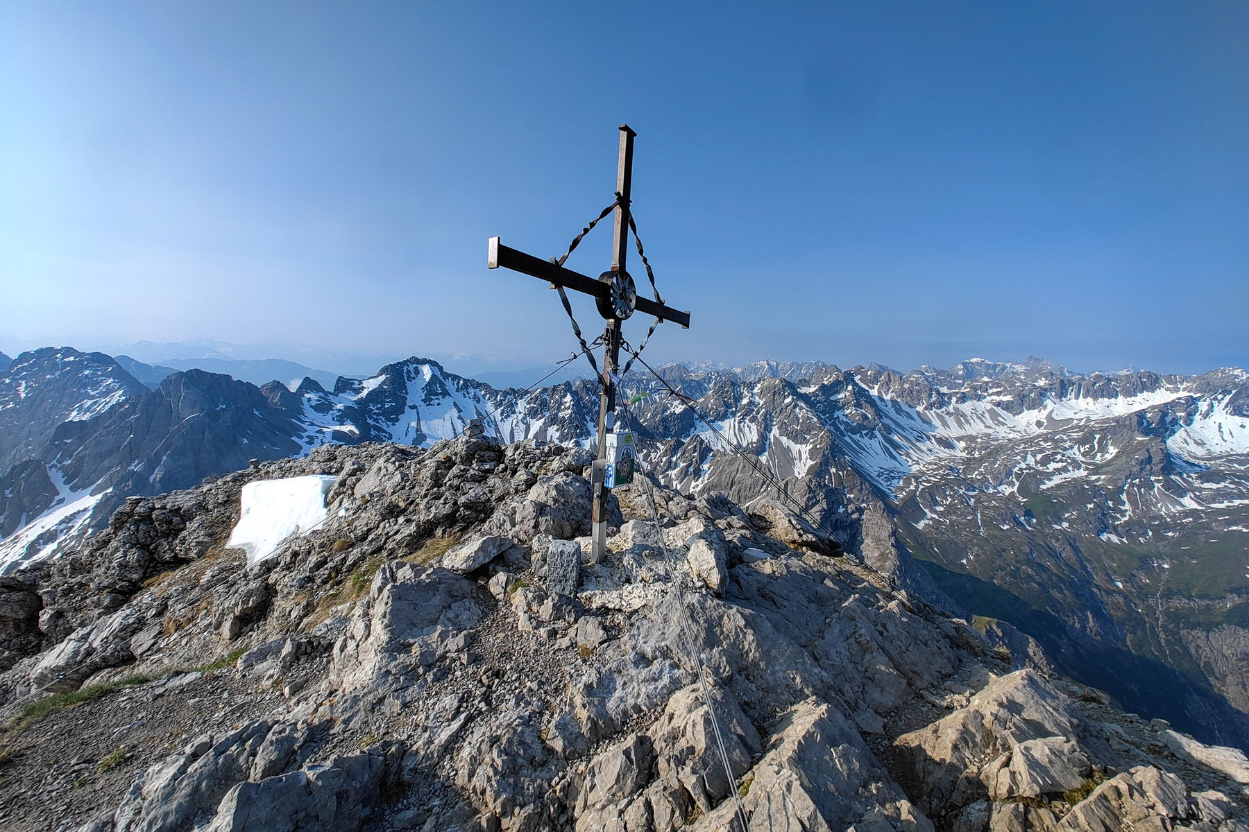 Der Weiterweg vom Gufelseejoch zur Kogelseespitze ist weniger anspruchsvoll (T2) und man erreicht flott den 2.647 Meter hohen Gipfel. Der Abstecher auf den Gipfel lohnt sich aufgrund des Panoramas allemal. Nach einer kurzen Pause geht es auf selbem Weg bergab bis zum Gufelseejoch.