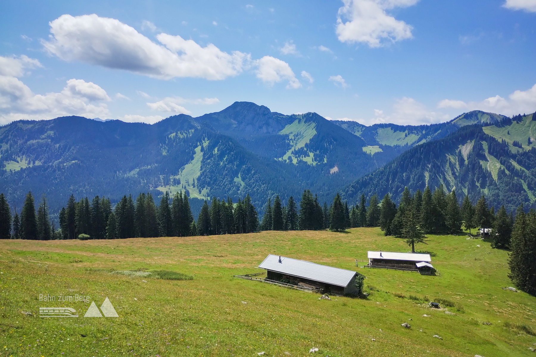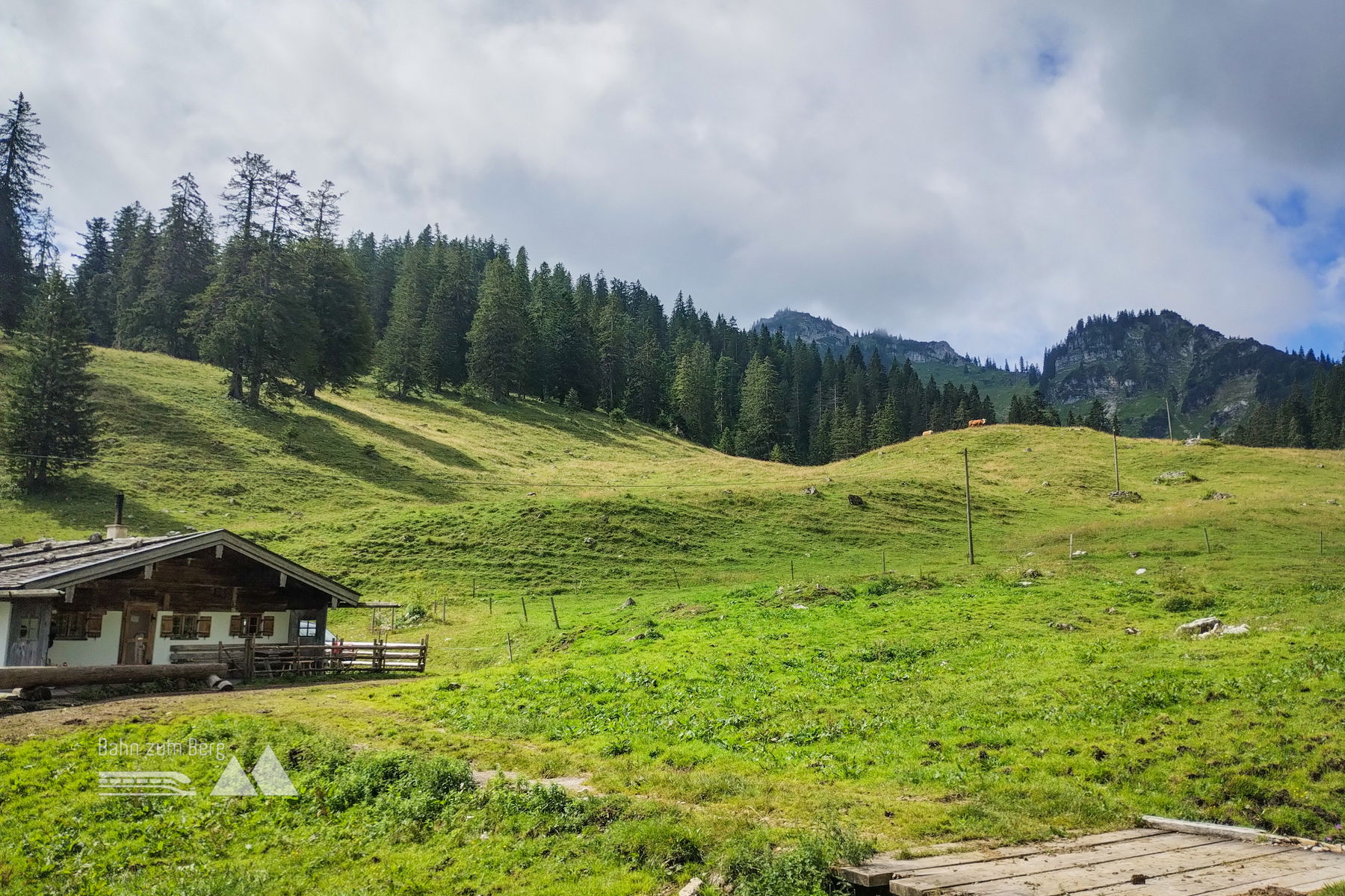In Fischhausen-Neuhaus verlassen wir den Bahnhof in nördlicher Richtung und erreichen schon bald den Ortsrand. Wir folgen der Wegweisung zum Bodenschneidhaus. Eine Forststraße führt zügig bergan. Unterhalb der Raineralm erreichen wir freies Almgelände und unsere heutigen Gipfelziele werden bereits sichtbar.