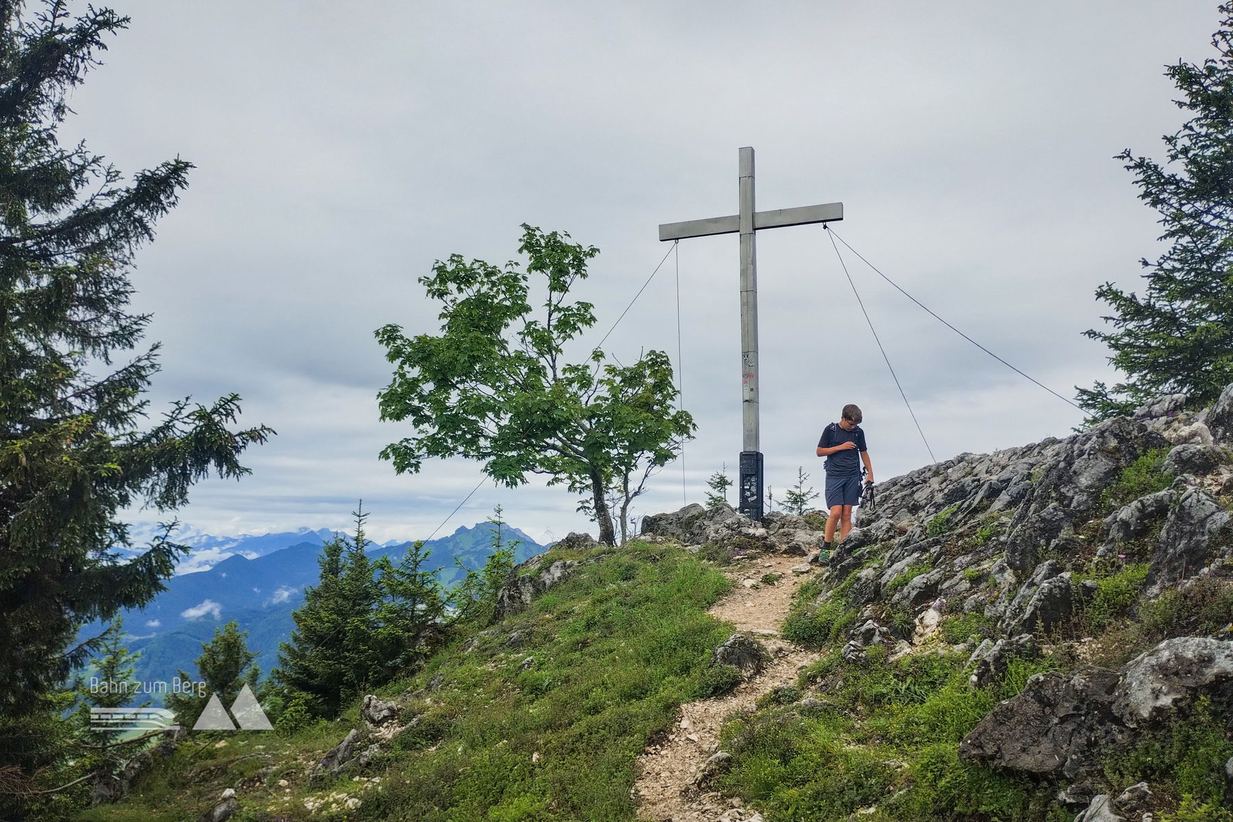 In Lenggries starten wir am Bahnhof und durchqueren den Ort in Richtung des Freibads, das wir kurze Zeit später passieren. Schon ist der Ortsrand erreicht und der Weg in Richtung Geierstein beginnt zu steigen. Auf dem Weg durch den Bergwald gewinnen wir rasch an Höhe und bekommen immer wieder Ausblicke auf das Isartal bevor wir nach steilen letzten Metern den überraschend aussichtsreichen Gipfel des Geiersteins und somit unser erstes Gipfelziel erreichen.