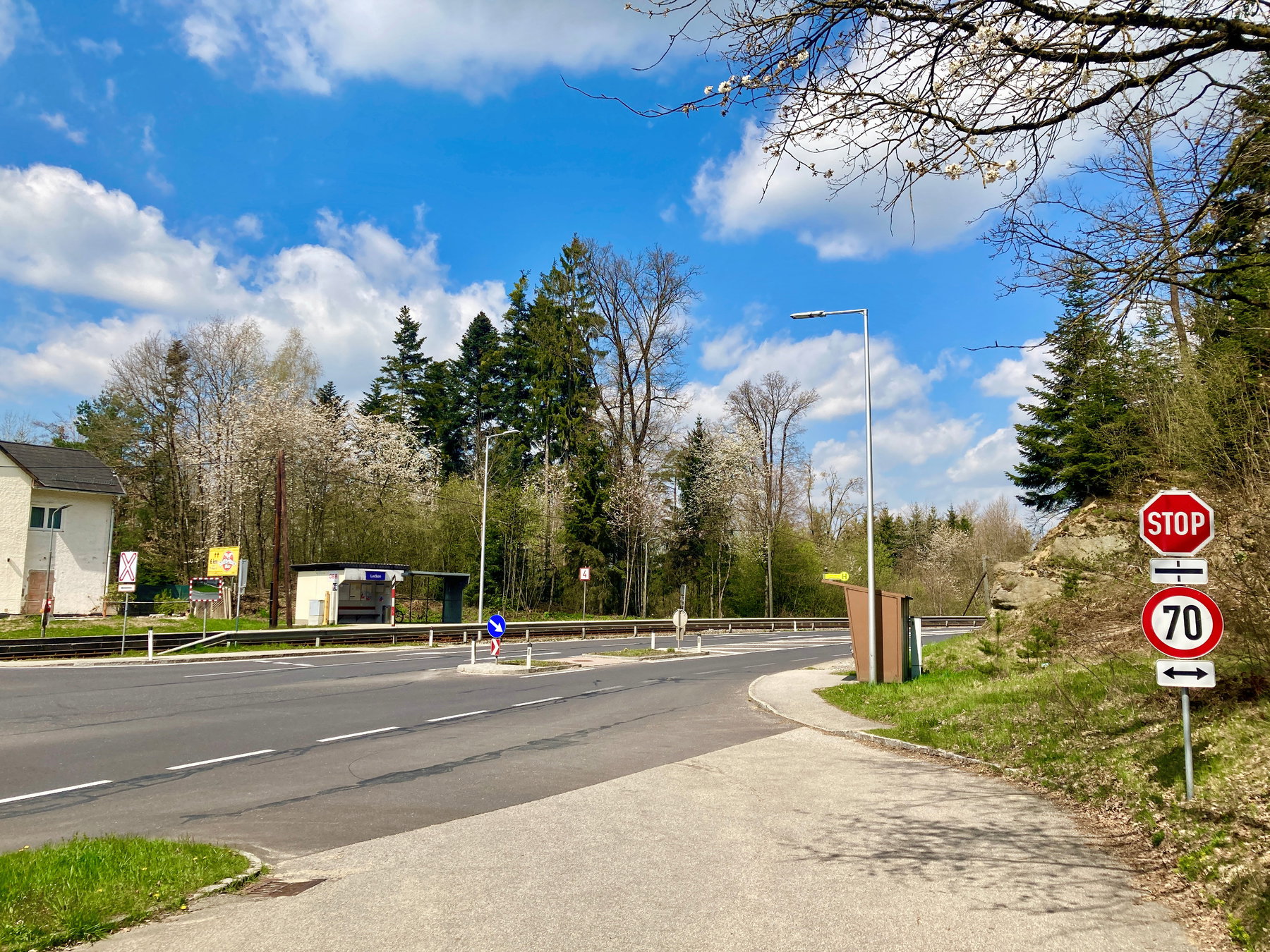Gestartet wird gegen Mittag am Bahnhof in Urfahr bei strahlend blauem Himmel, mit nur wenigen Wolken. Zwischen Rottenegg und Lacken verkehrt an diesem Tag Schienenersatzverkehr. Recht unkompliziert wird vom Zug in den Bus gewechselt. Nach der Überwindung des Saurüssels (diesmal auf Asphalt; ansonsten ist man hier mit 46 ‰ Steigung auf einem der steilsten Bahnabschnitte Österreichs unterwegs) steigen wir in Lacken aus und legen gemütlich los.