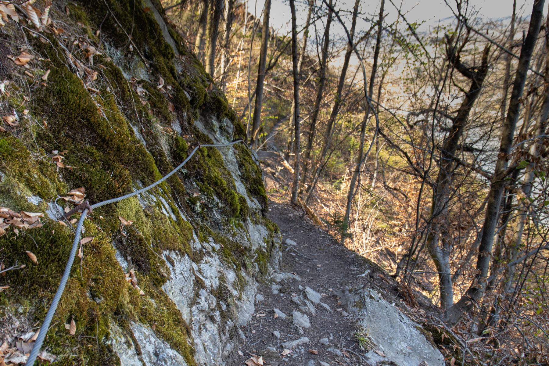 Nach dem Aussichtsplatz wird der Waldpfad tatsächlich zum Steig, sorgt für Abwechslung, schöne Ausblicke und erfordert gleichzeitig sicheren Schritt und Schwindelfreiheit.