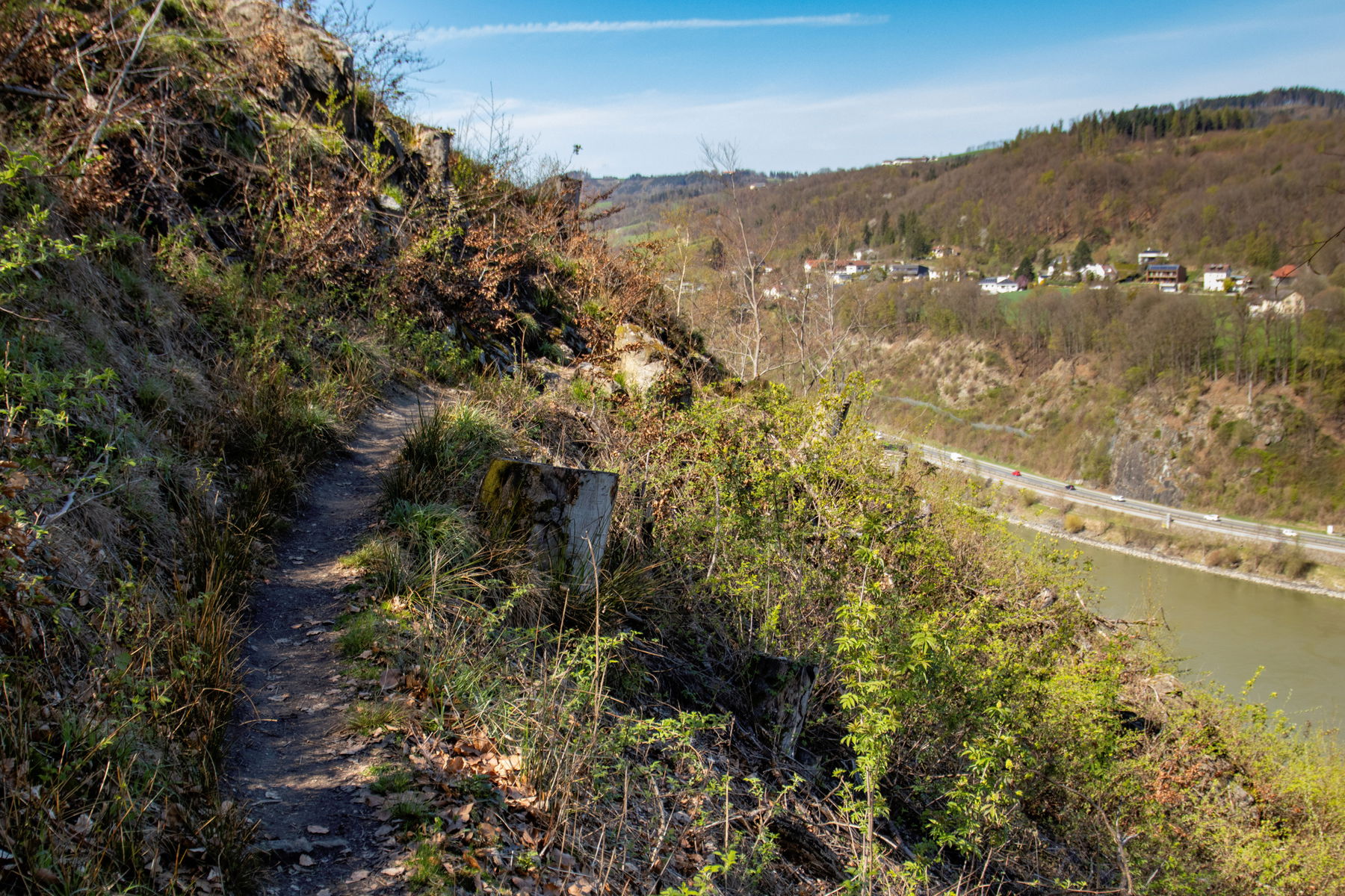 Ich halte mich links, folge dem Hinweisschild Donausteig und gehe Richtung Donau.