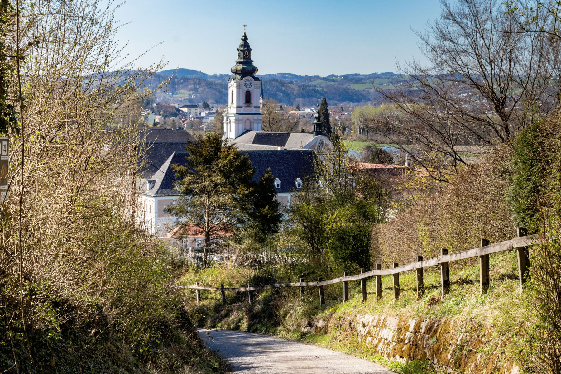 Ich nähere mich dem Ende des Prinzensteiges und komme geradewegs zum Stift Wilhering.