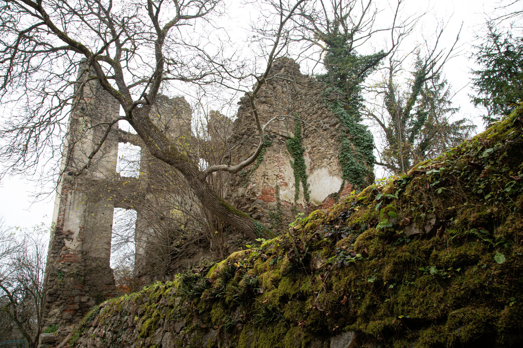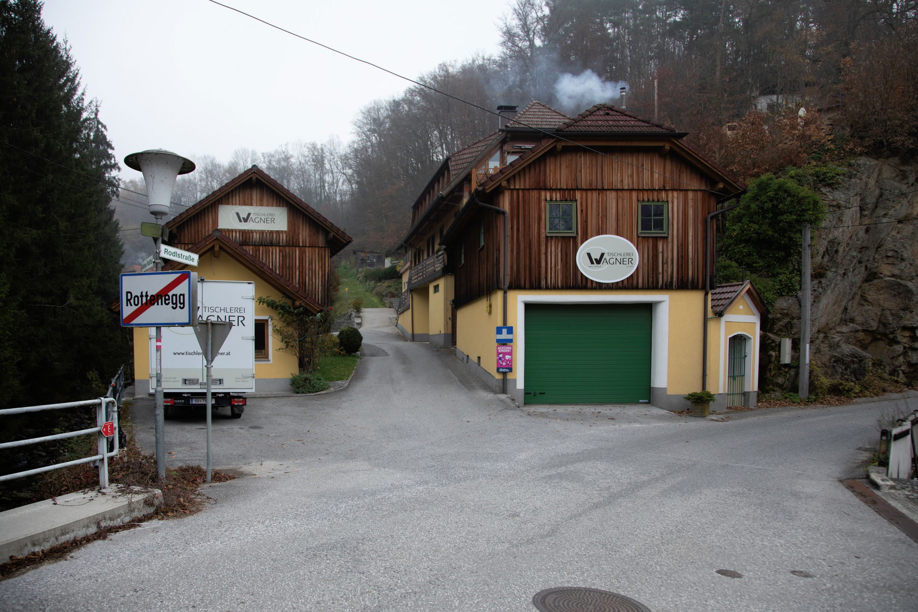 Ich starte am Bahnhof Rottenegg, gehe über den Parkplatz und biege rechts ab in die Eschelberg Straße (L1510) Richtung Rottenegg. Nach der Brücke über die große Rodl biege ich wieder rechts ab in die Rodl Straße. Bei der Tischlerei Wagner mache ich einen kurzen Abstecher zur Ruine Rottenegg. Dazu gehe ich links in die Sackgasse und folge einem Pfad bergauf zum Hofberg. Kurz geht es durch einen Laubwald und schon bin ich bei der Ruine angelangt. Die Stimmung ist echt gespenstig und gespannt lese ich auf einer Infotafel die Geschichte zur Burg.