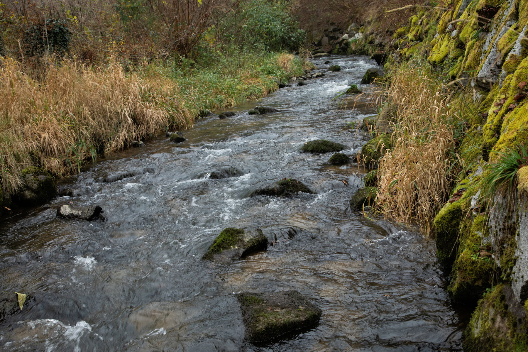 Nachdem ich genug habe vom Gruseln und meiner fantasievollen Reise in die Vergangenheit, gehe ich denselben Weg wieder zurück zum Eschelbach.