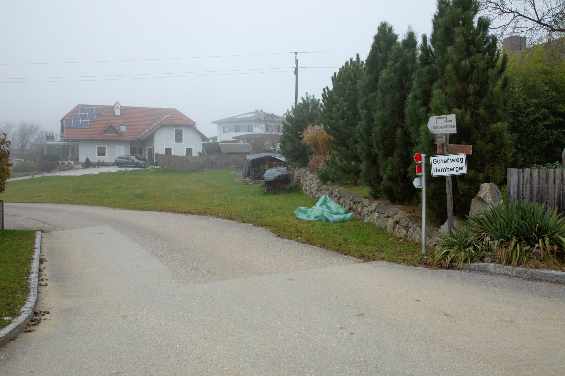 Ich gehe den Güterweg Hamberger Richtung der Holzwerkstatt Pichler (Hausname Hamberger) weiter und biege ein Stück vor der Holzwerkstatt rechts ab in einen Feldweg. Hier fehlt eine Hinweistafel. Doch es kann nur rechts in den Feldweg gehen (bestätigt mir auch meine GPX-Tour).